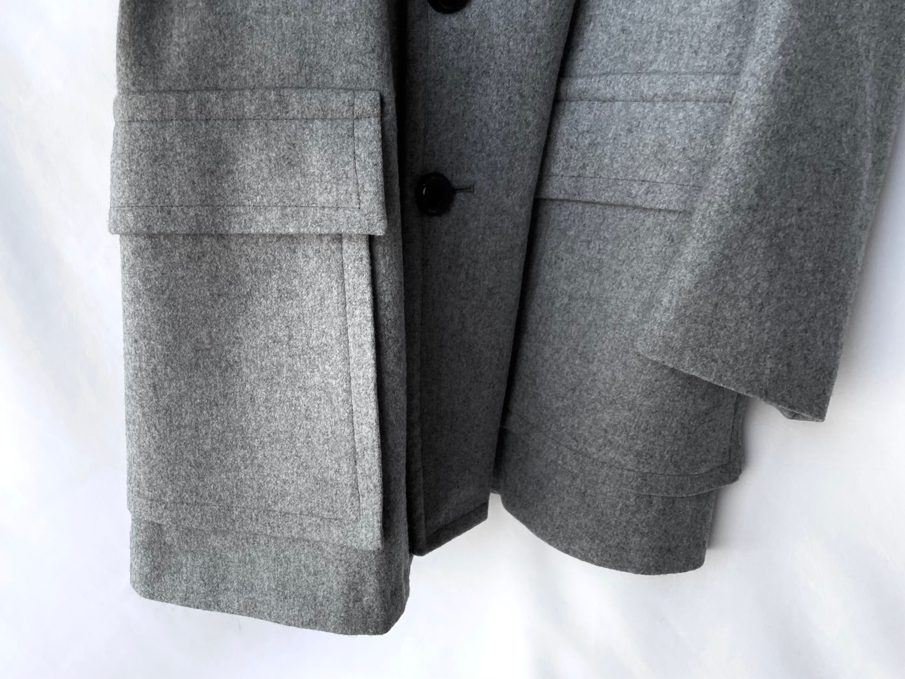 サイズ違いのループボタン、大判なフラップポケットが両裾に付きます。