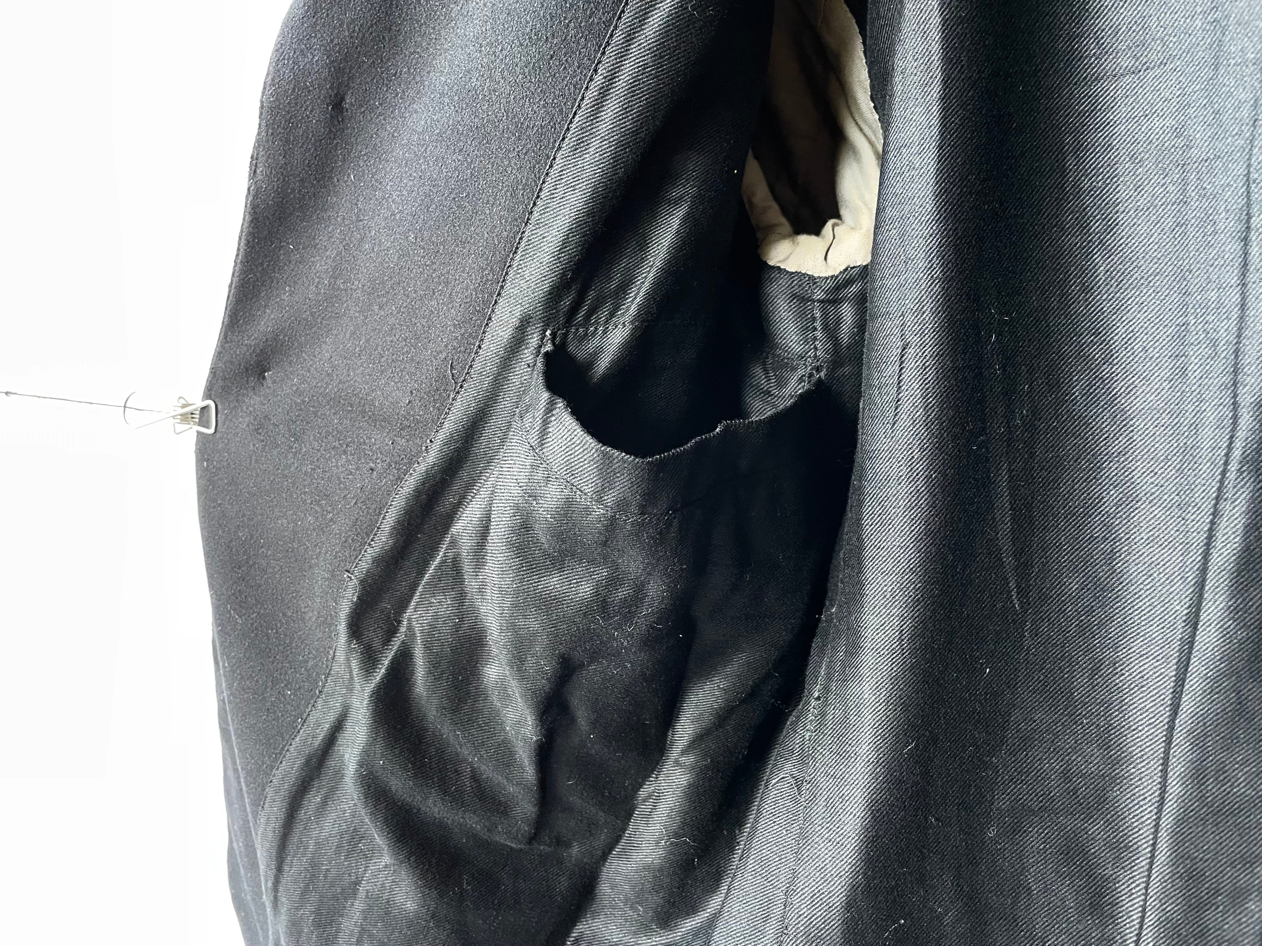 The black cotton lining with a deep luster, and the sleeve lining made of two types of fabrics are finely joined, giving it a unique charm from an older era.