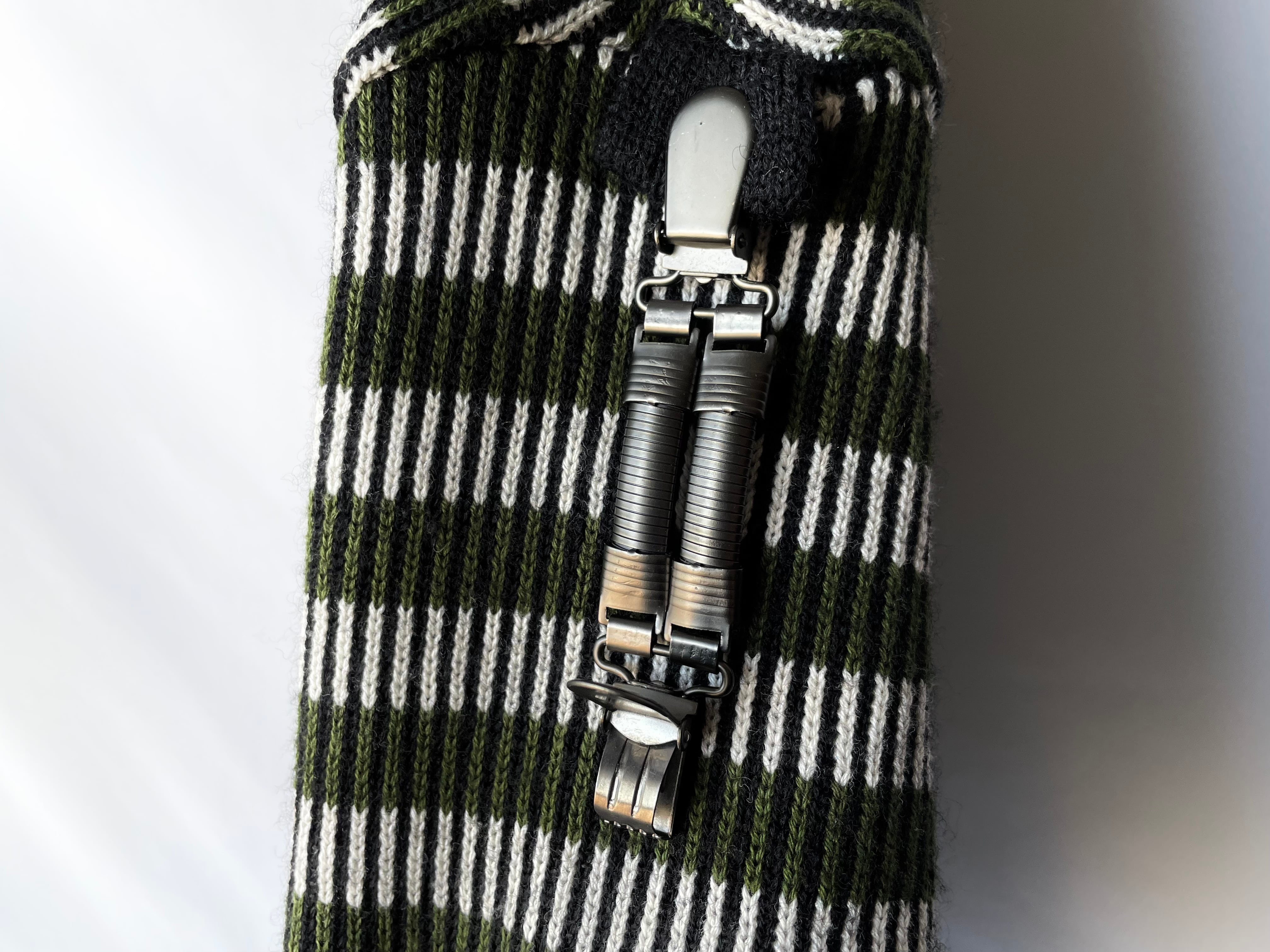 重厚な金属製のクリップパーツは、約5mm程の伸縮性のある特殊な作り。