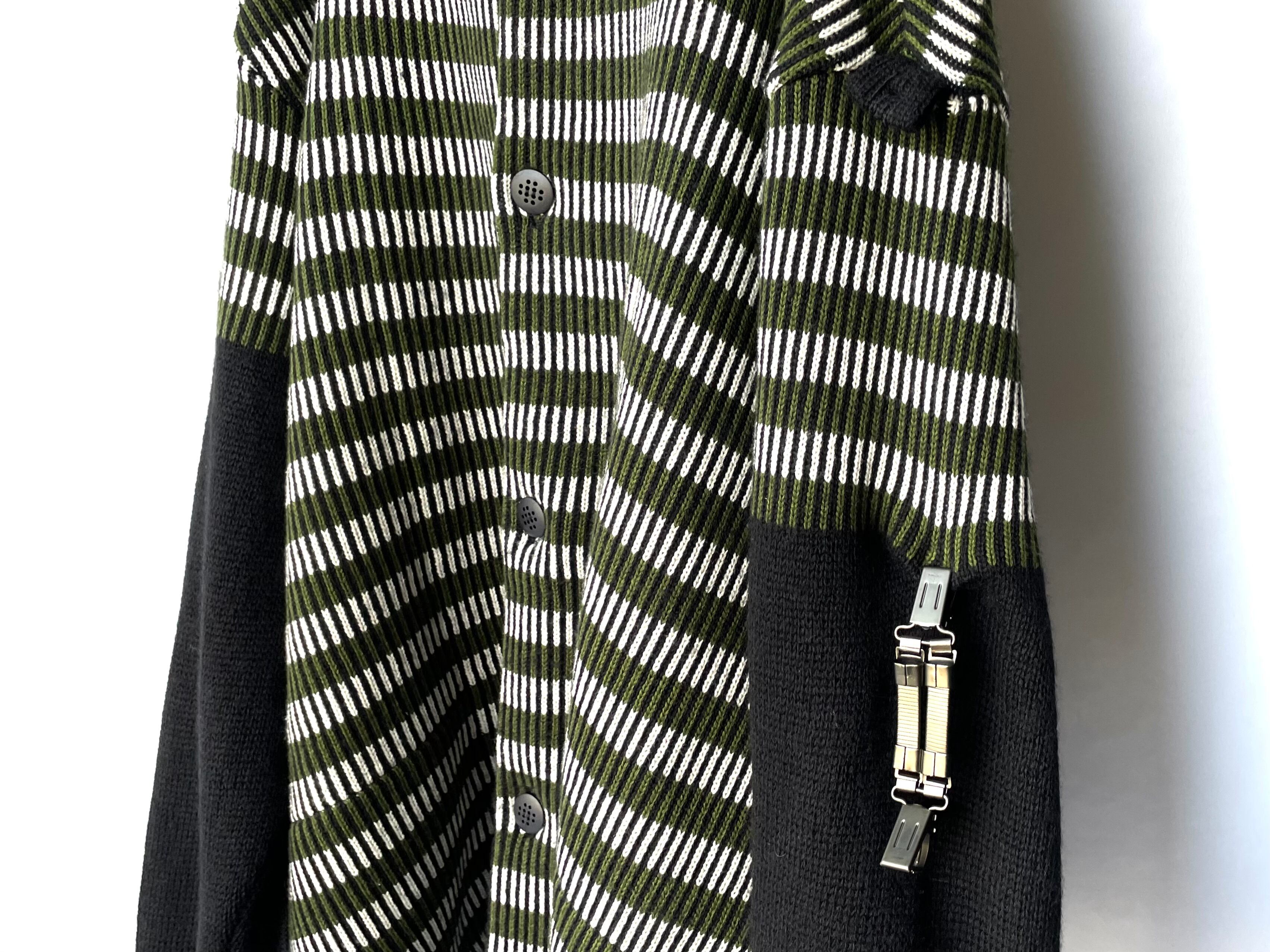 12穴の大ぶりなフロントボタンも面白い見え方をします。
