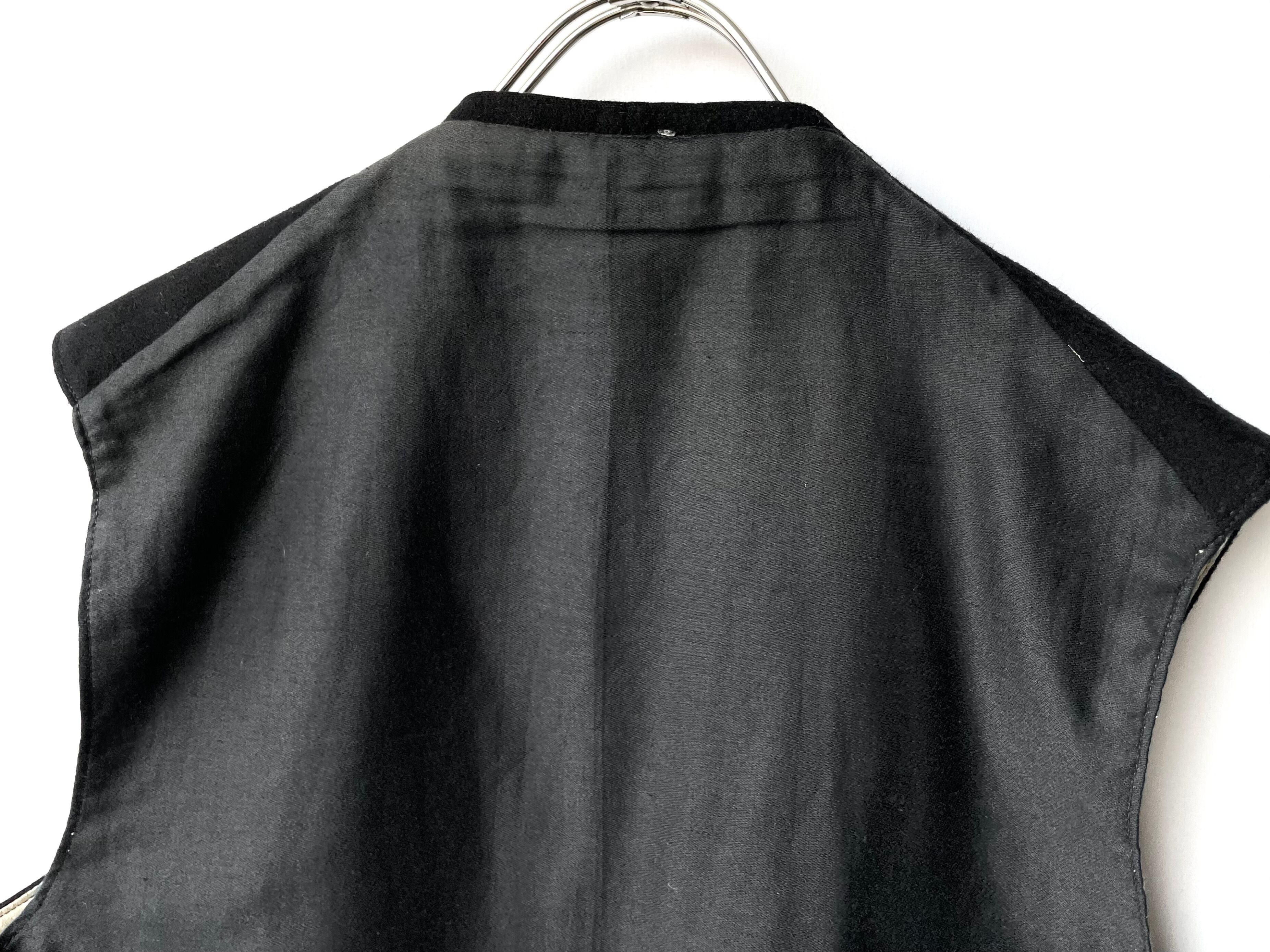 4つポケットフロントのジレは、首下が丸く湾曲した美しいカッティング。