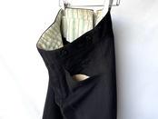 コートの前立てにはポケットが存在せず、後裾深く入るベントのタック裏に2つの隠しポケットが付きます。