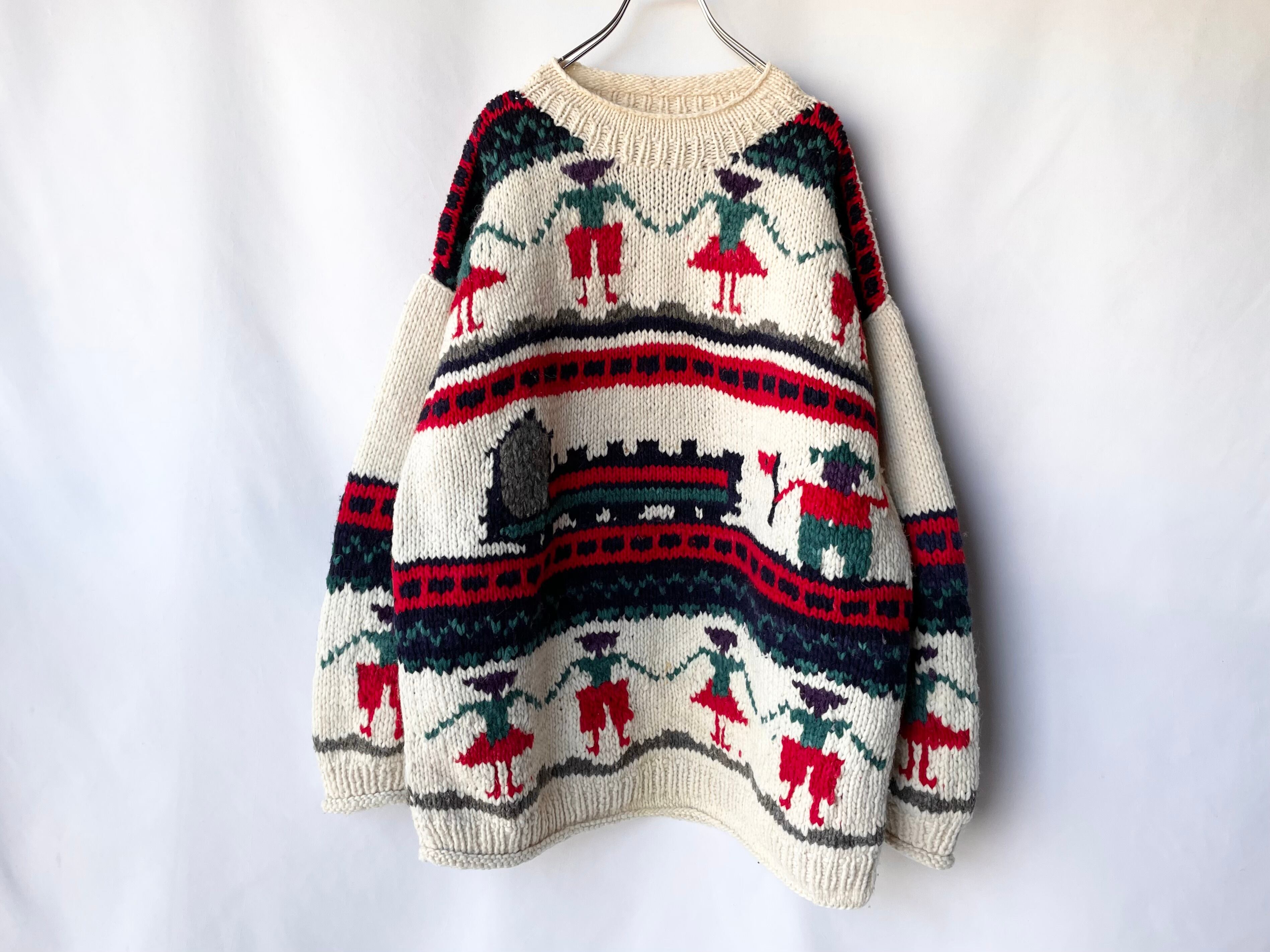 太い毛糸でぎっしり高密度に編まれた肉厚なウールニット。