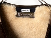 肉厚なムートンレザーにブラウンコーデュロイ、ワックスコットン、ウールライニングが乗った4種の異素材切り替え。