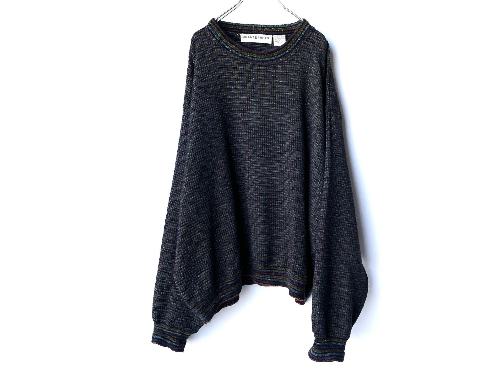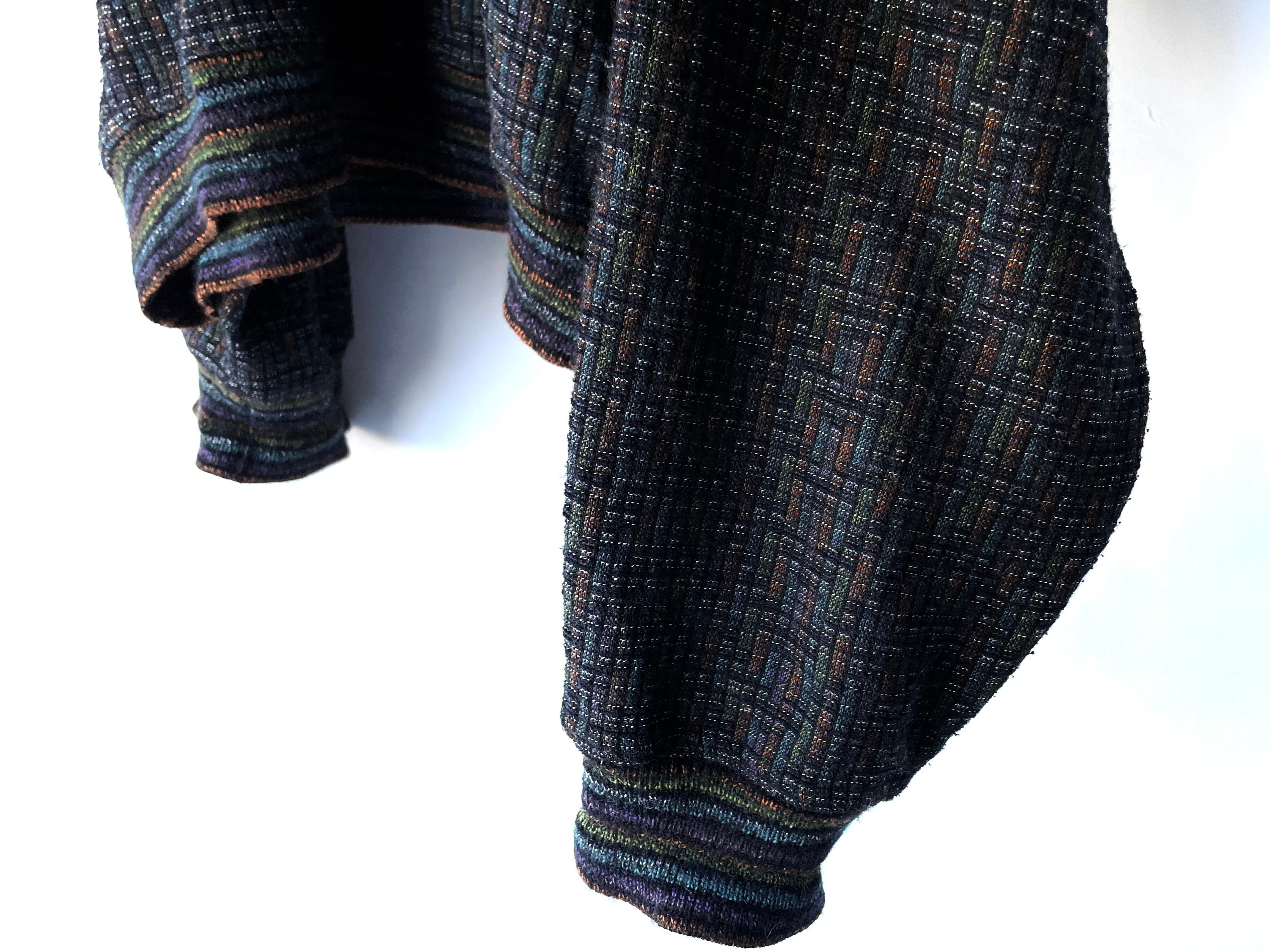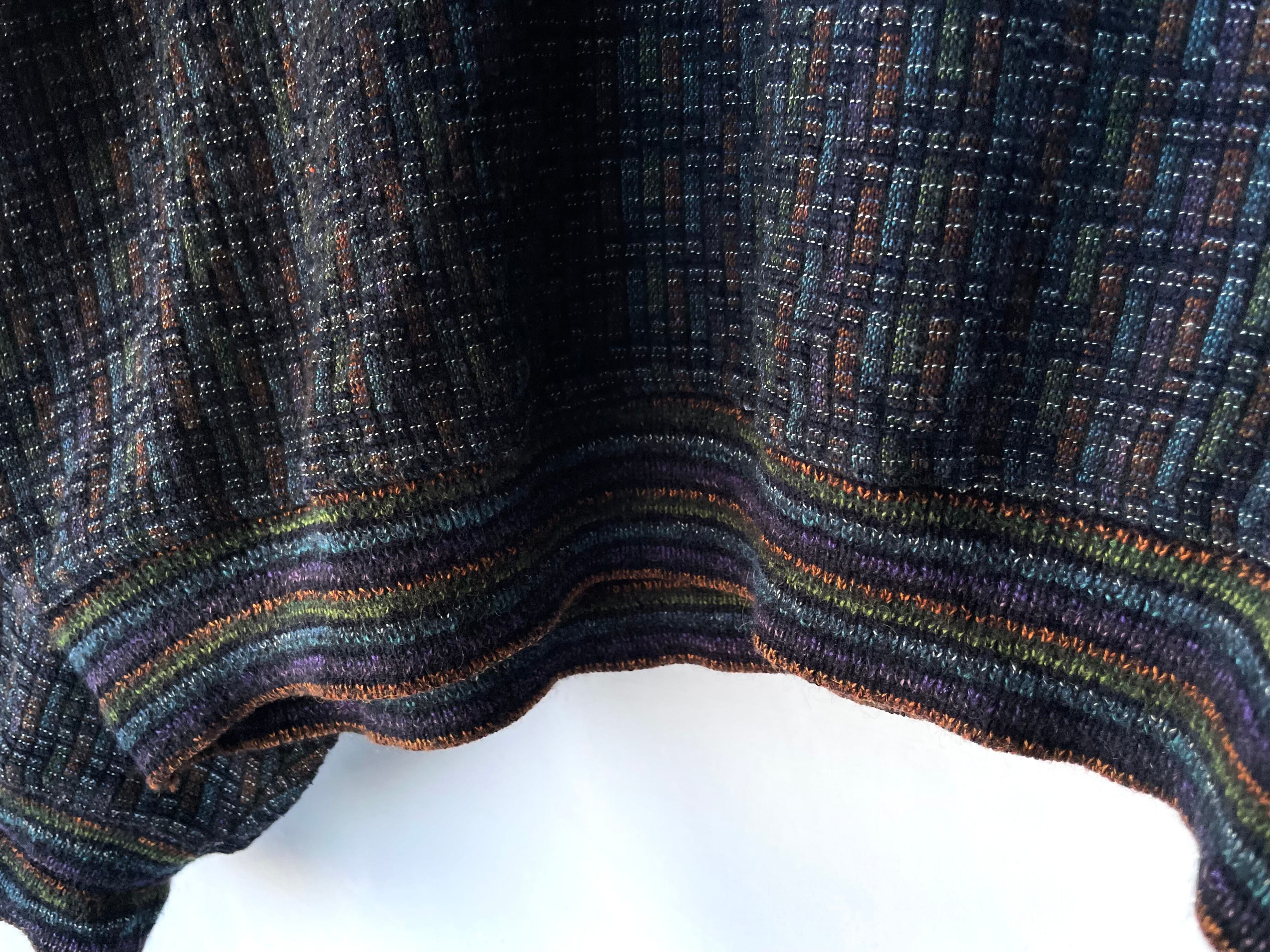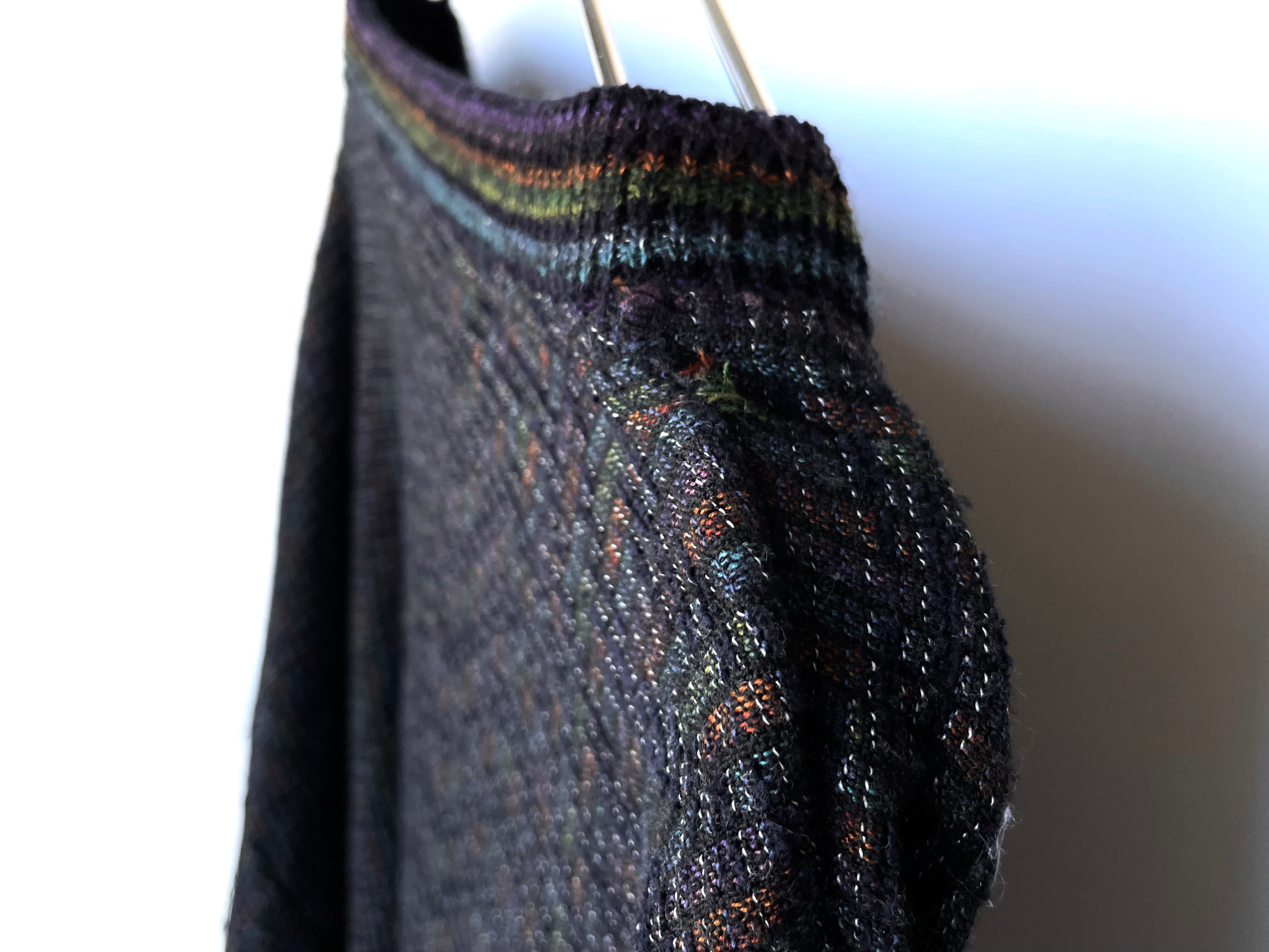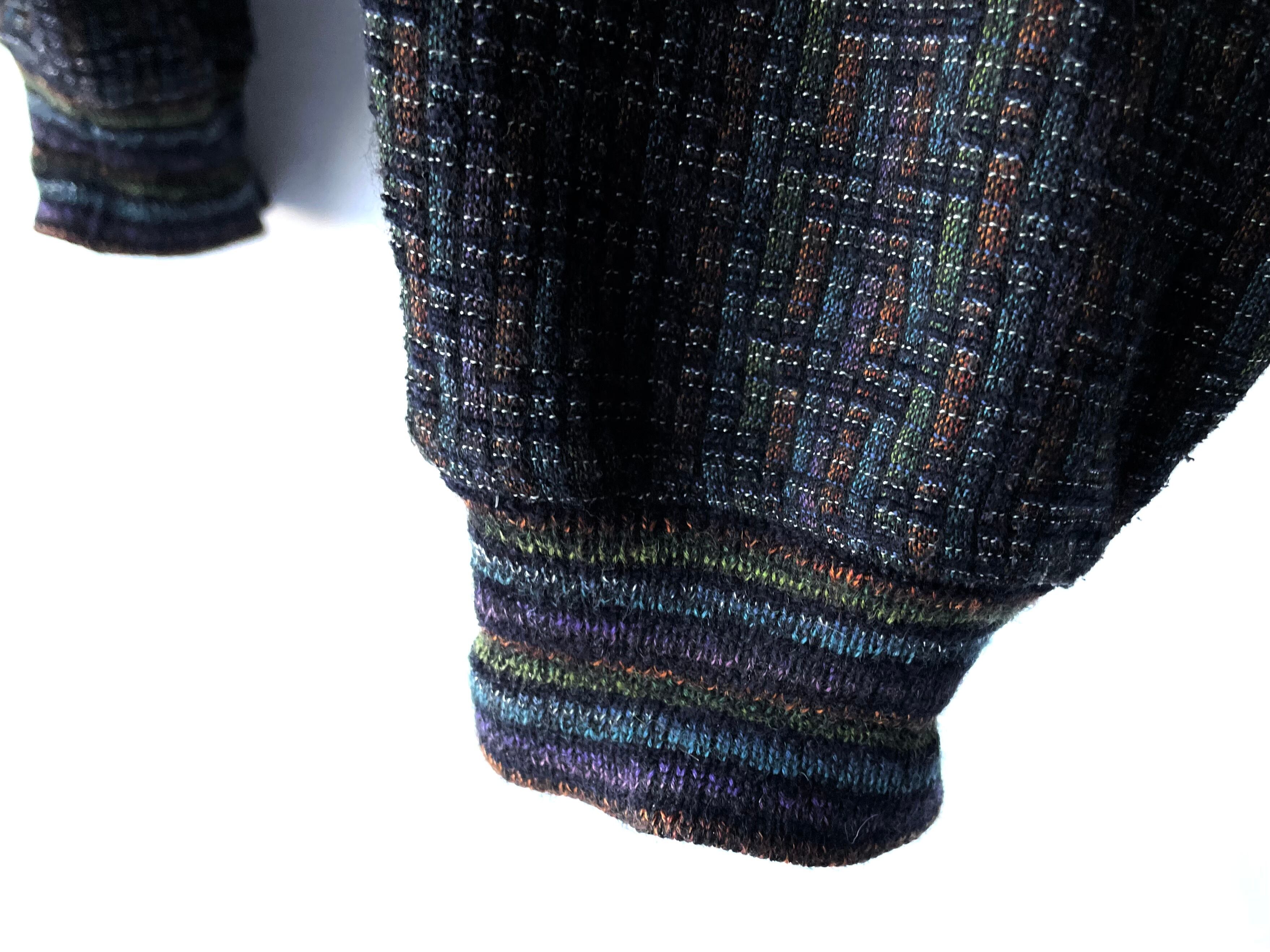 計7色の鮮やかなマルチカラーに白/黒糸が混じる、素晴らしい表情の編生地。