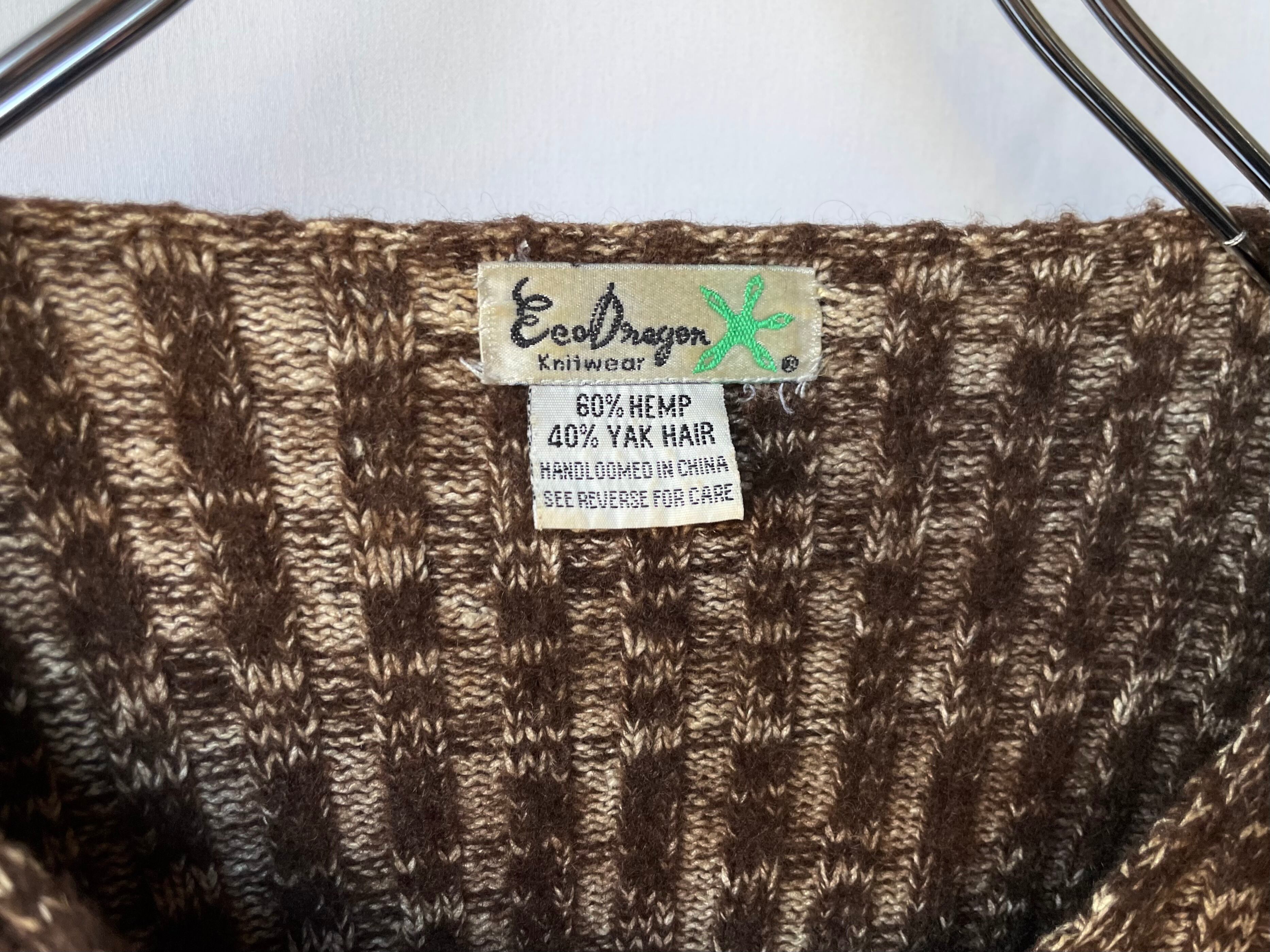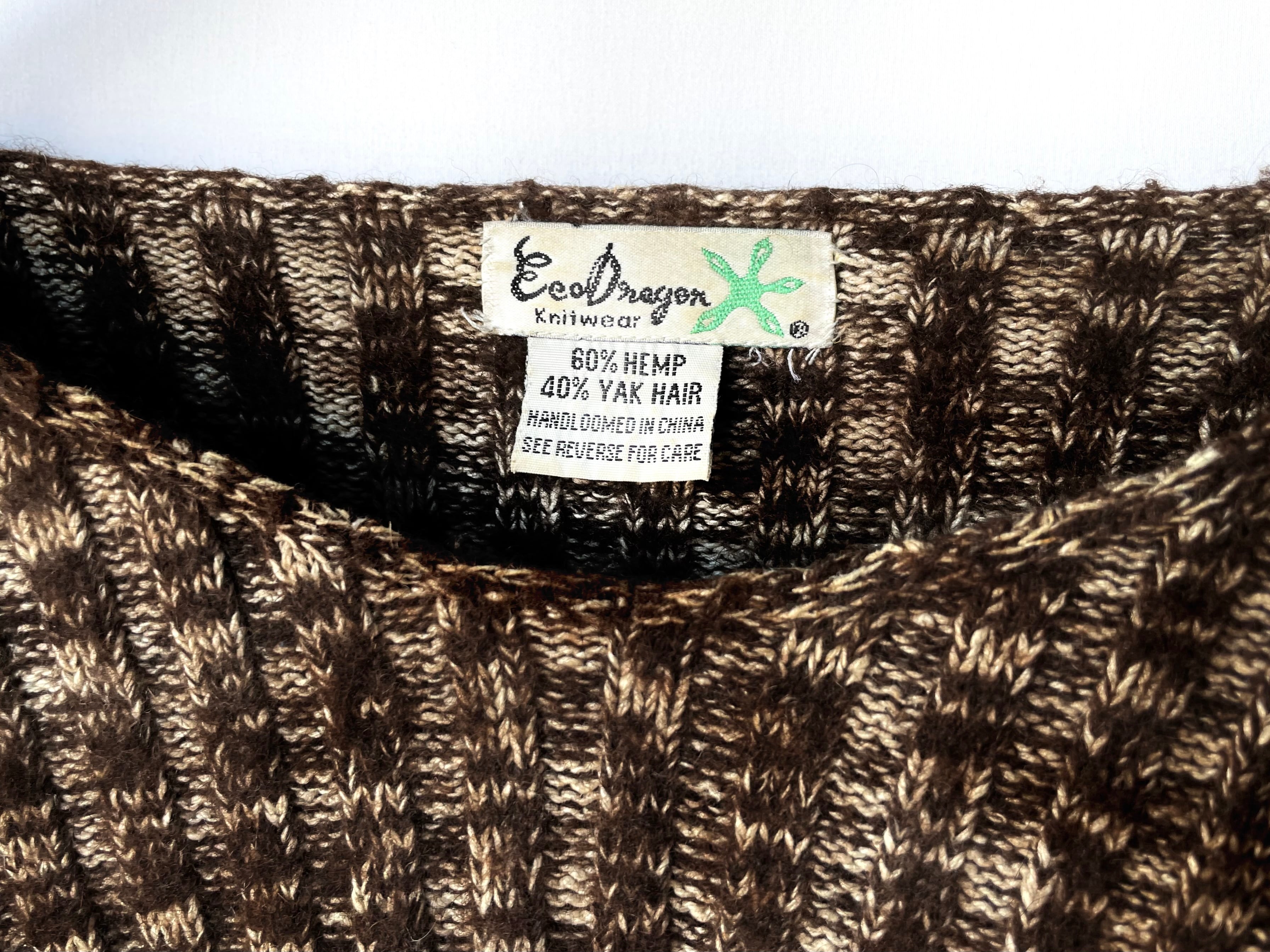 Hand knitted using unique and luxurious yarn labeled YAK HAIR / HEMP.