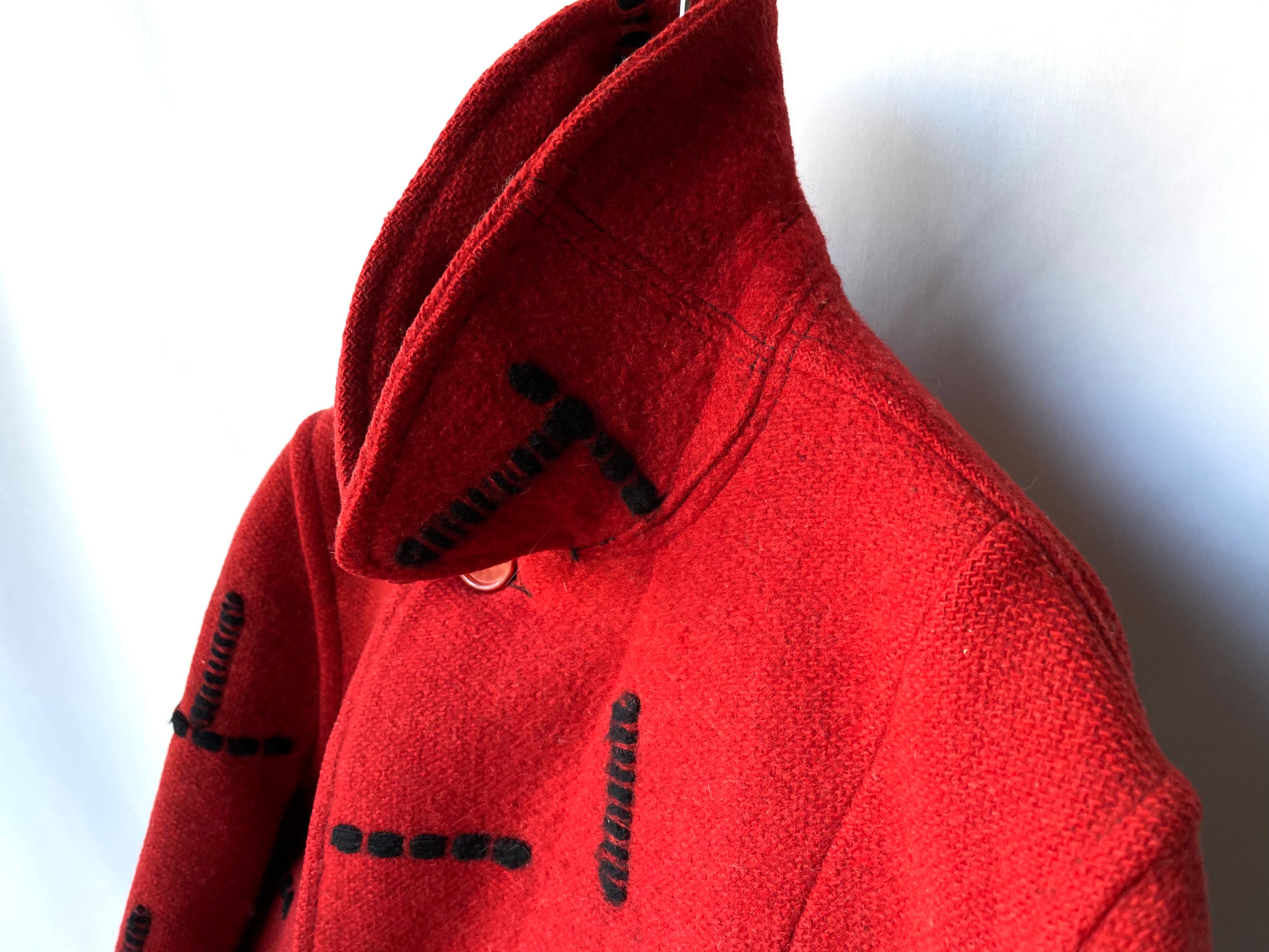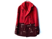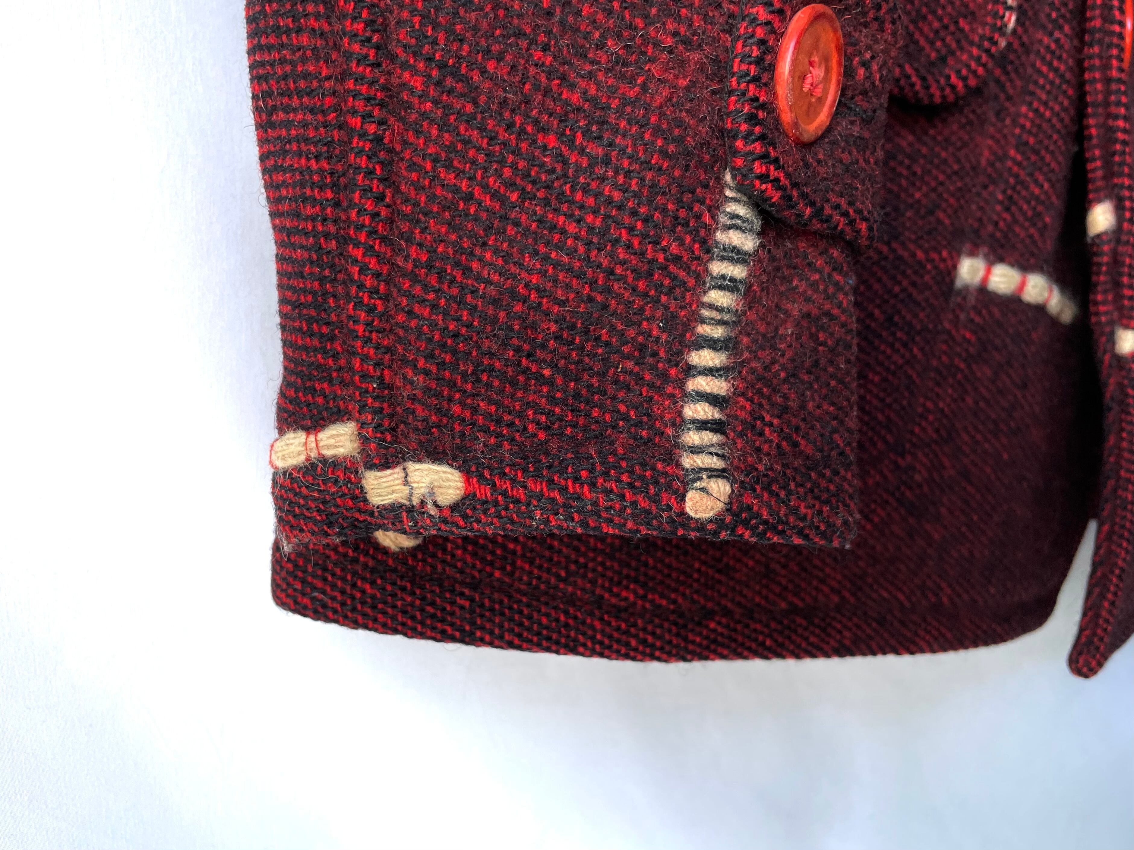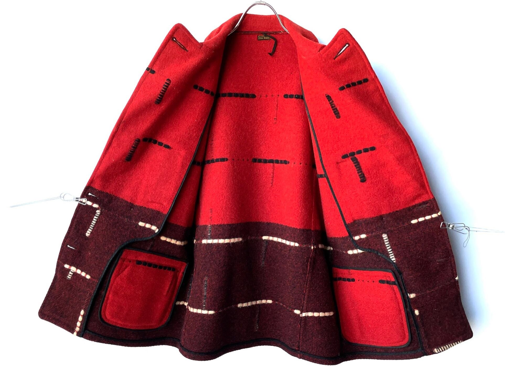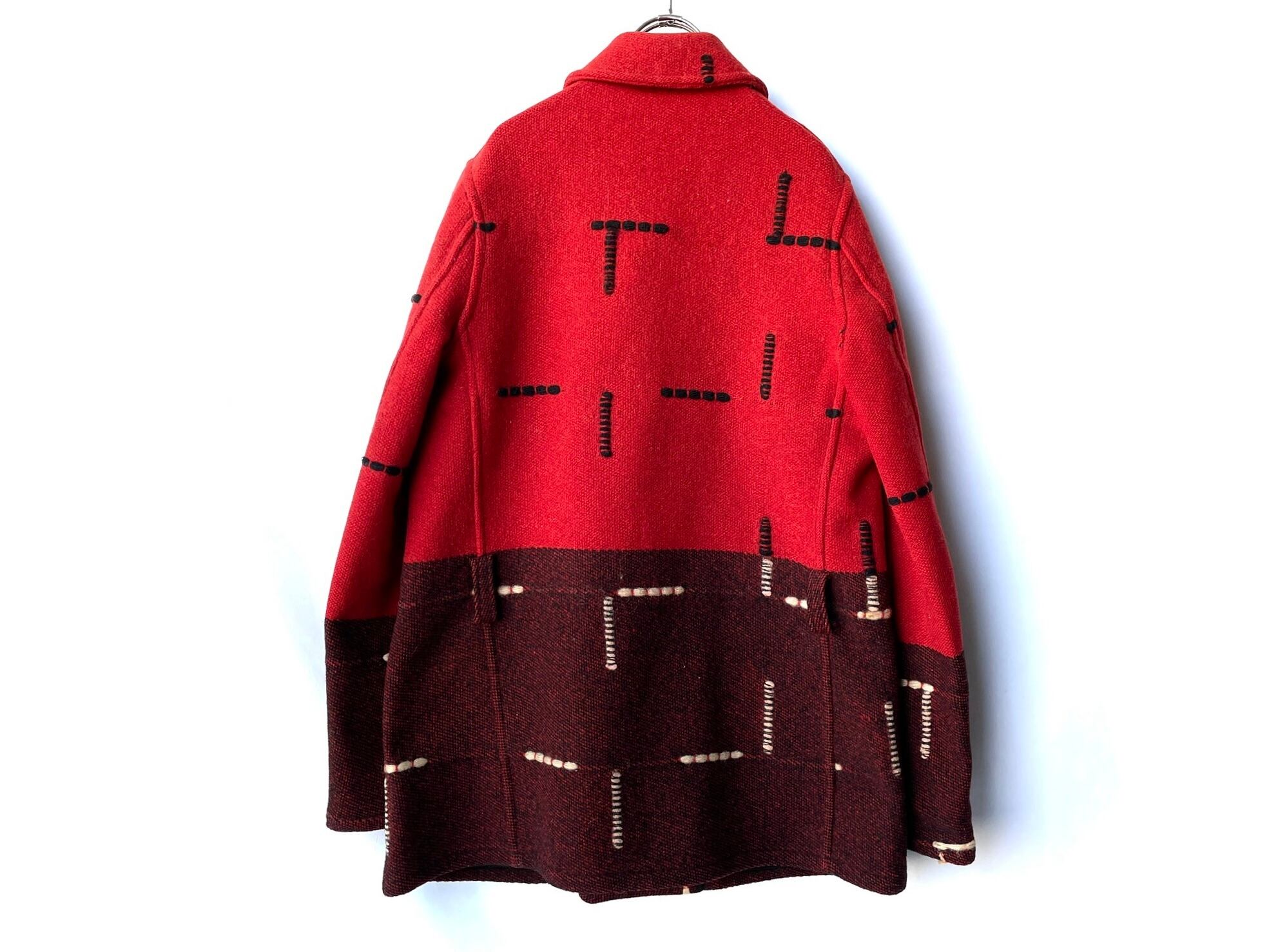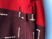 赤/黒/アイボリーの糸がぎっしり高密度に織り込まれた肉厚なウールボディ。