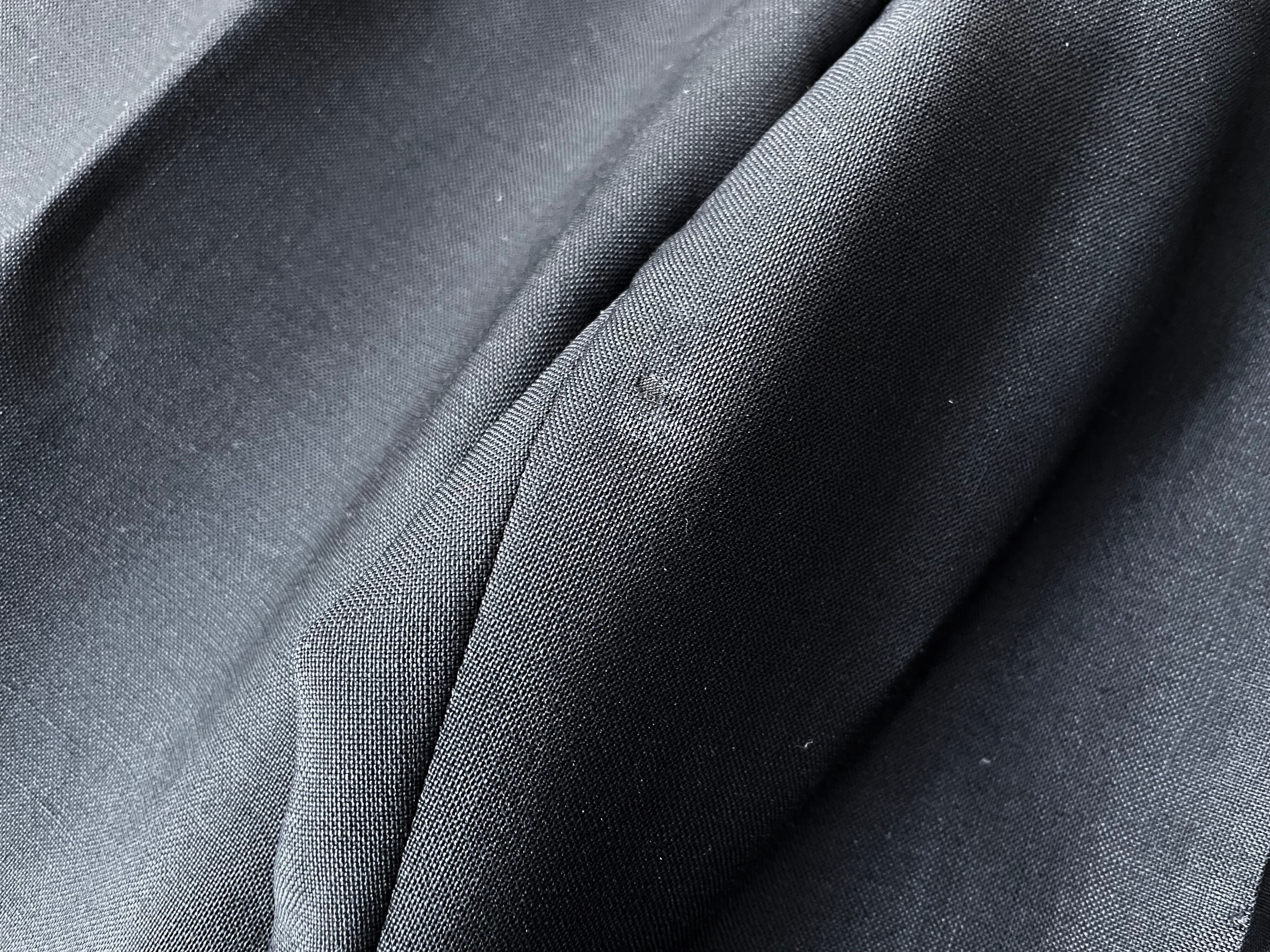 鈍い艶のあるぎっしり高密度な織生地は、恐らくピュアレーヨン、もしくはレーヨン混じりの混紡だと推測します。