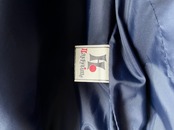 Deep navy blue body color, thick yet relatively lightweight melton wool.