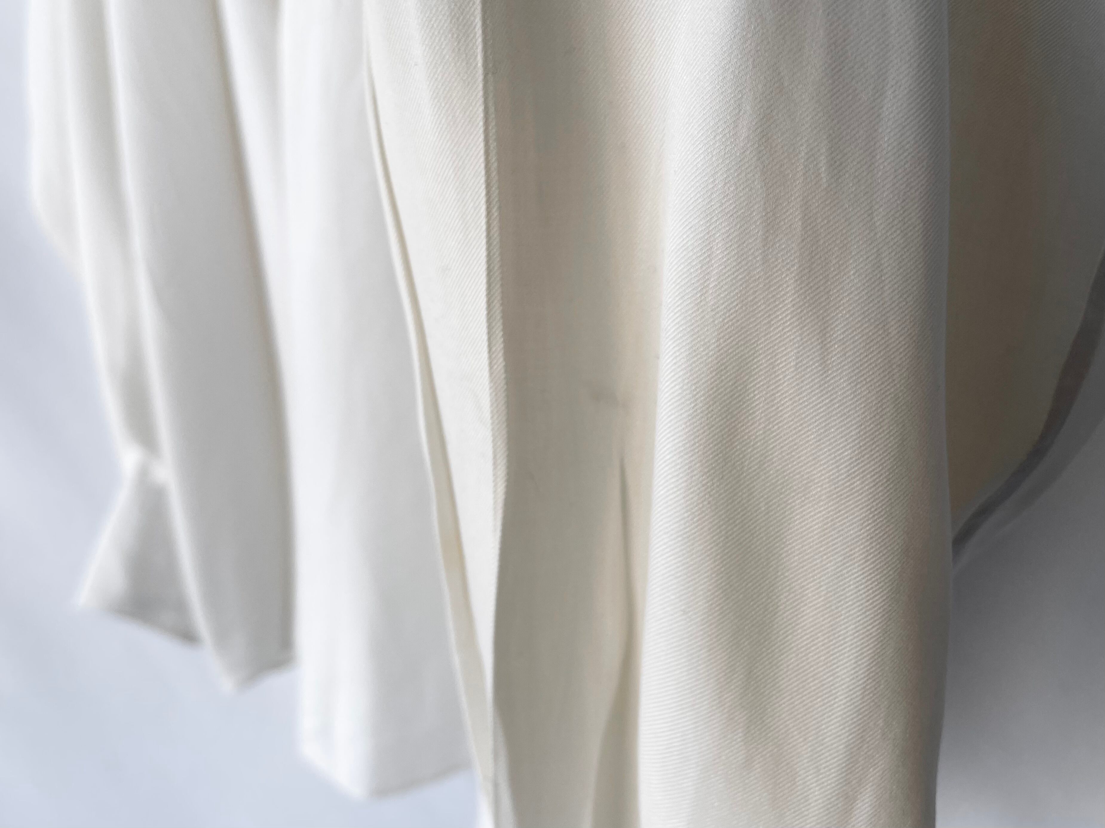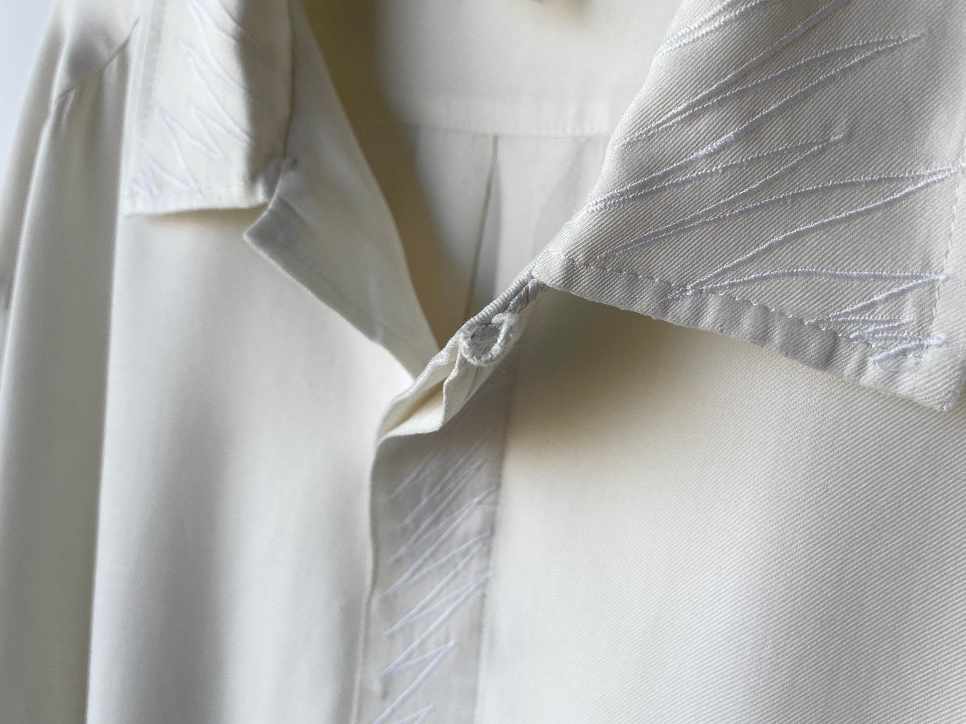 小ぶりな襟のオープンカラーに身幅約74cm程のビッグシルエット。