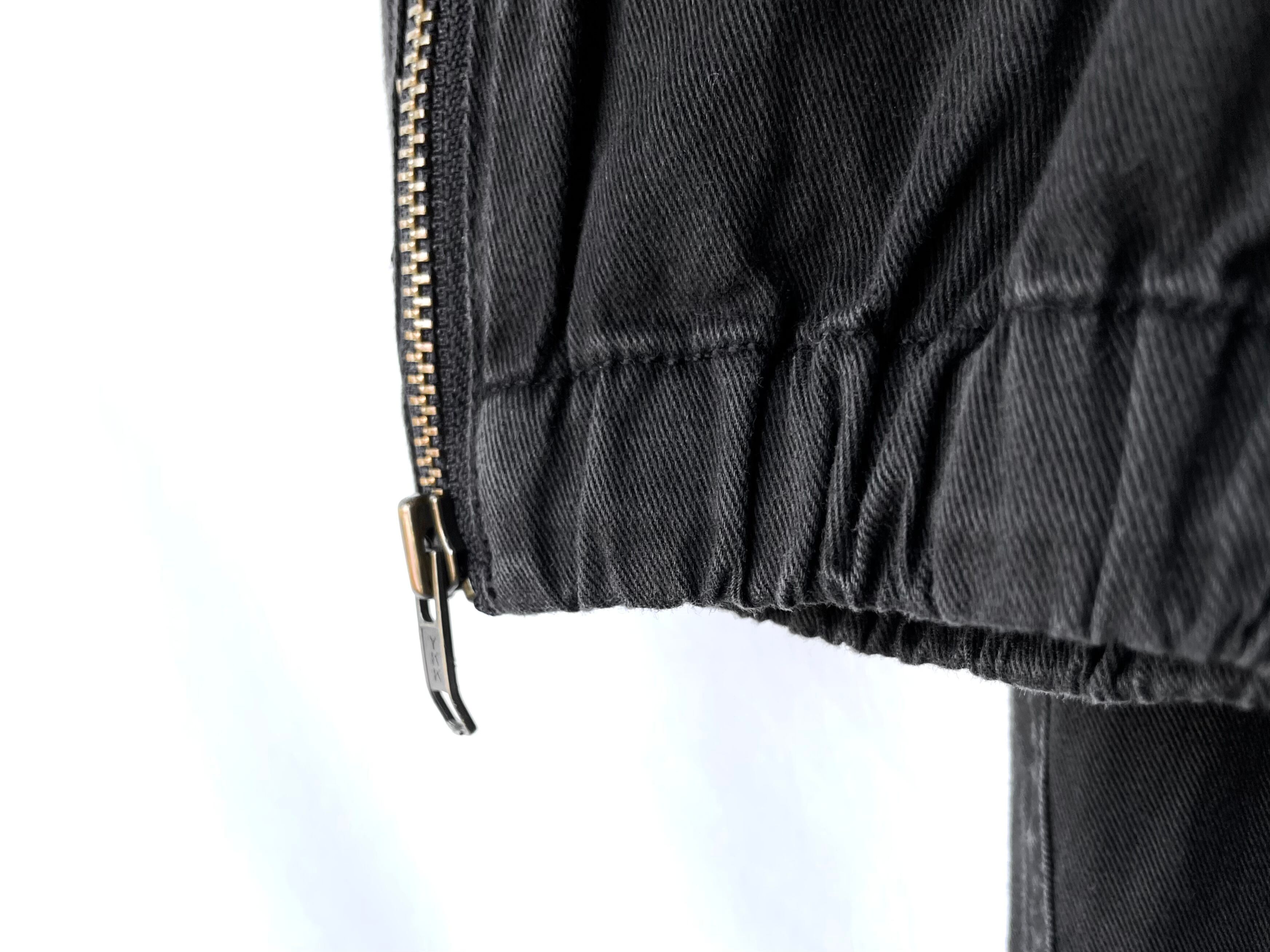 右袖のジッパーヘッドに少しの湾曲、古いブラックコットンならではの雰囲気の良い自然な褪色がございます。
