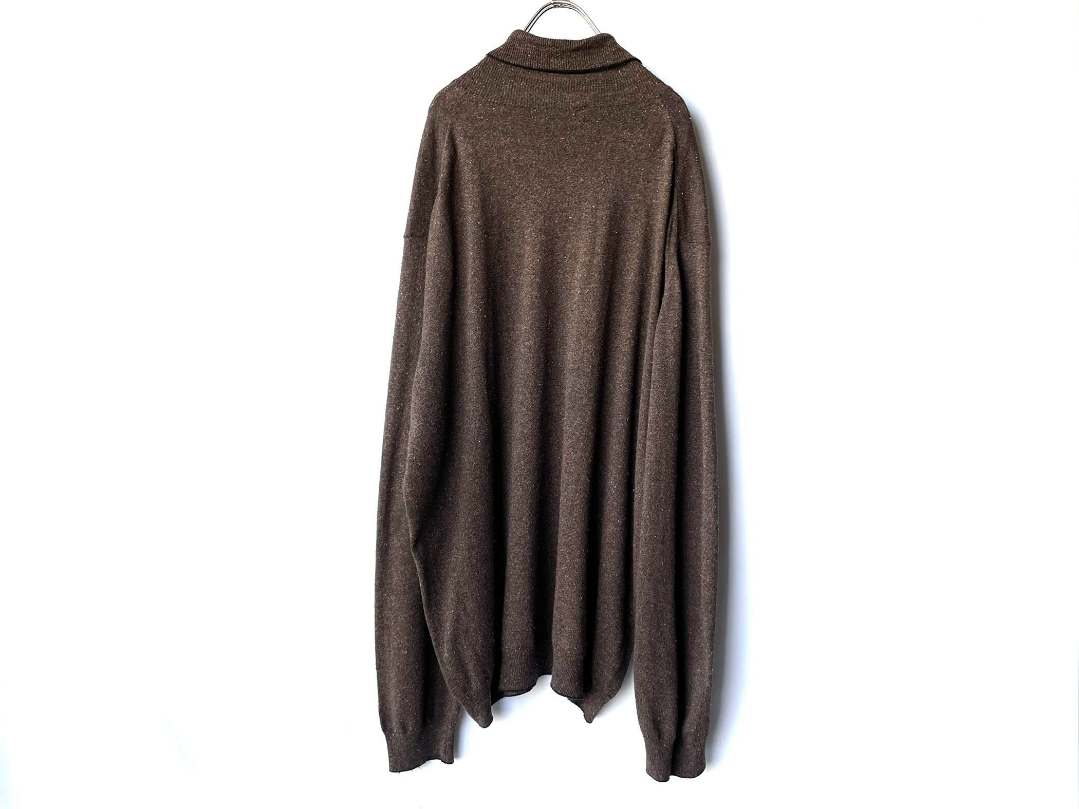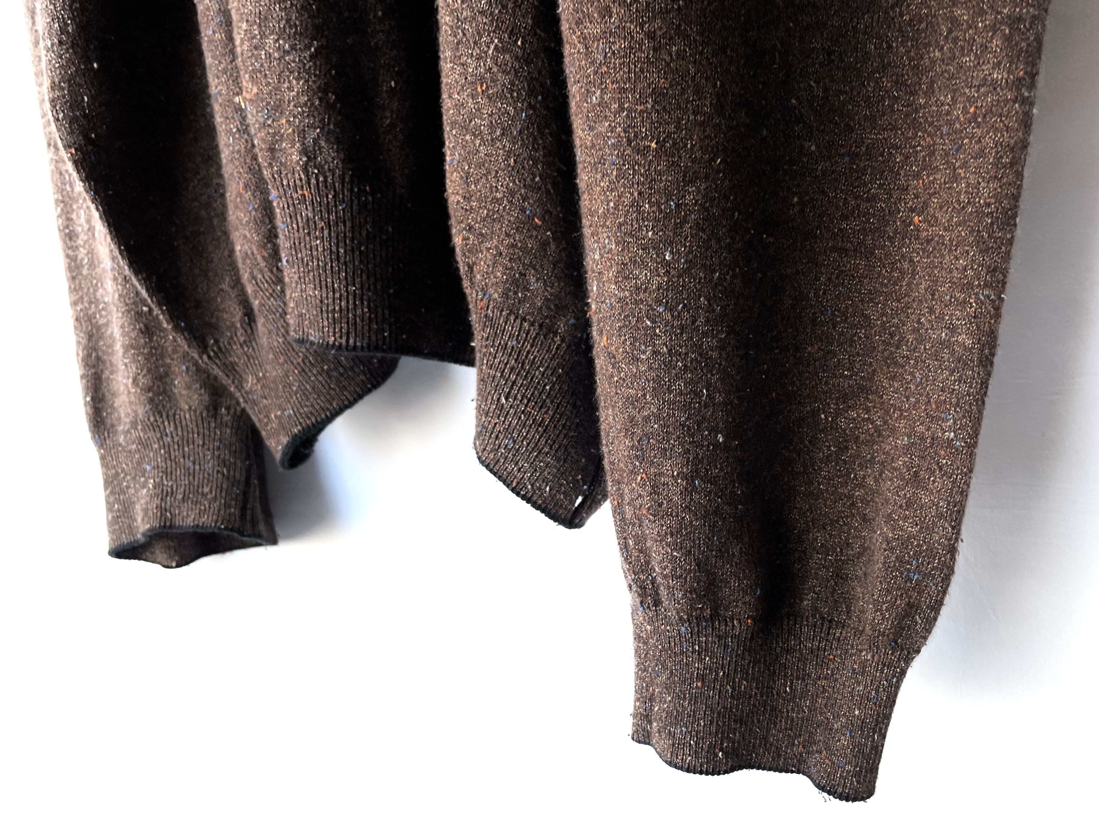 焦茶ベースに鮮やかなオレンジ、ライトブルーの糸が混じる素晴らしい配色の一枚。