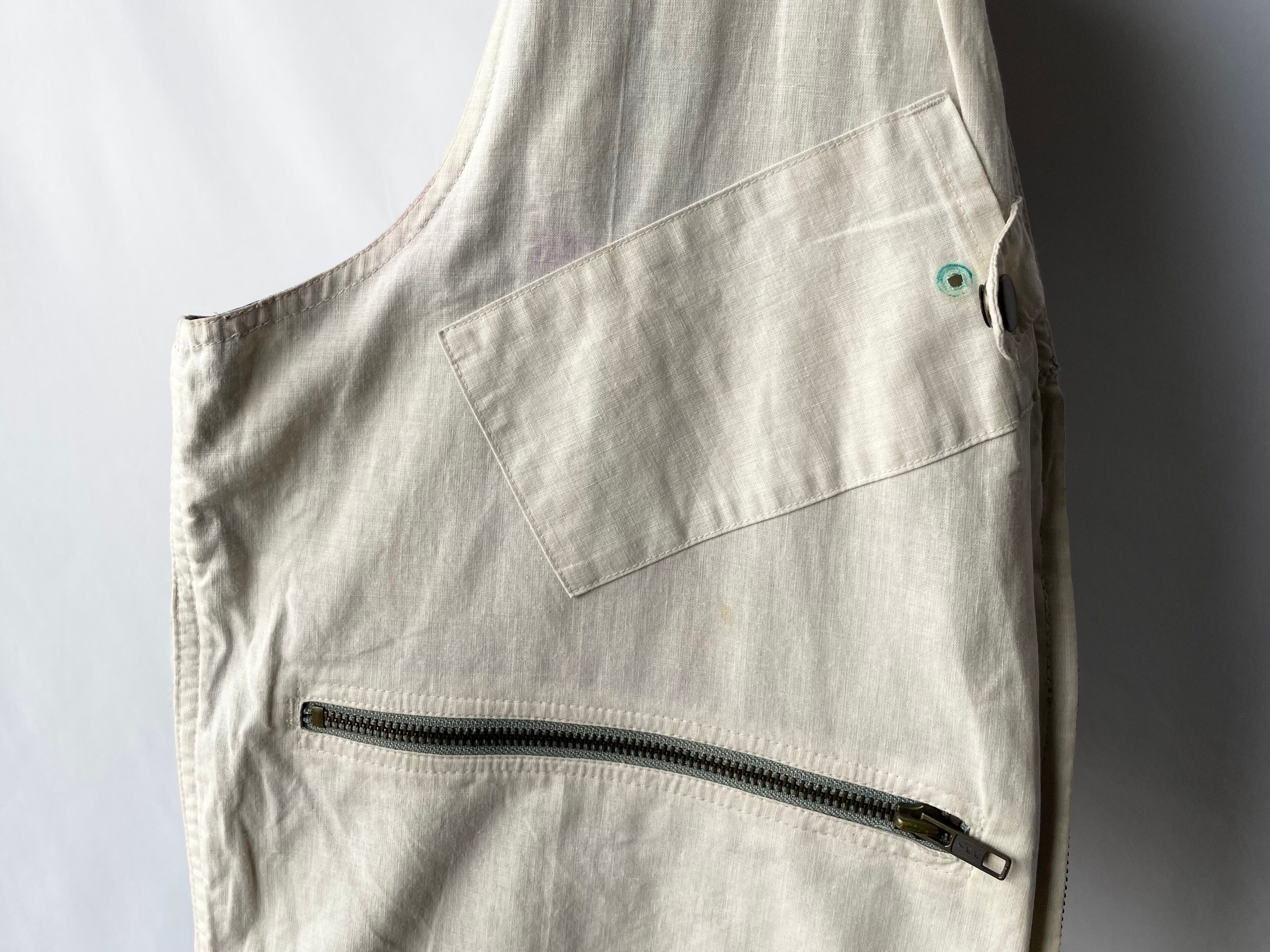 右後裾、斜めに傾けられたジッパーポケット。