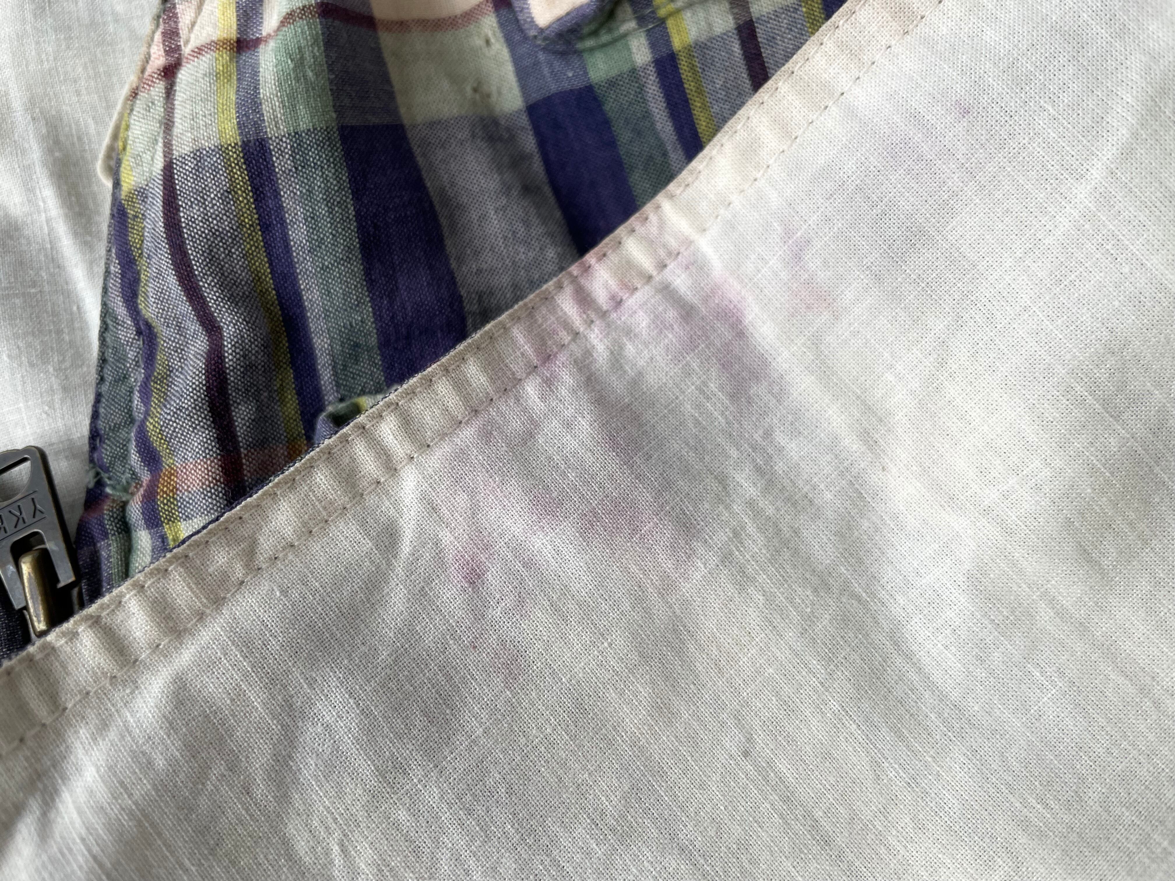There are small scratches and light stains as shown in the images, and the snap part of the inner pocket is missing.