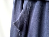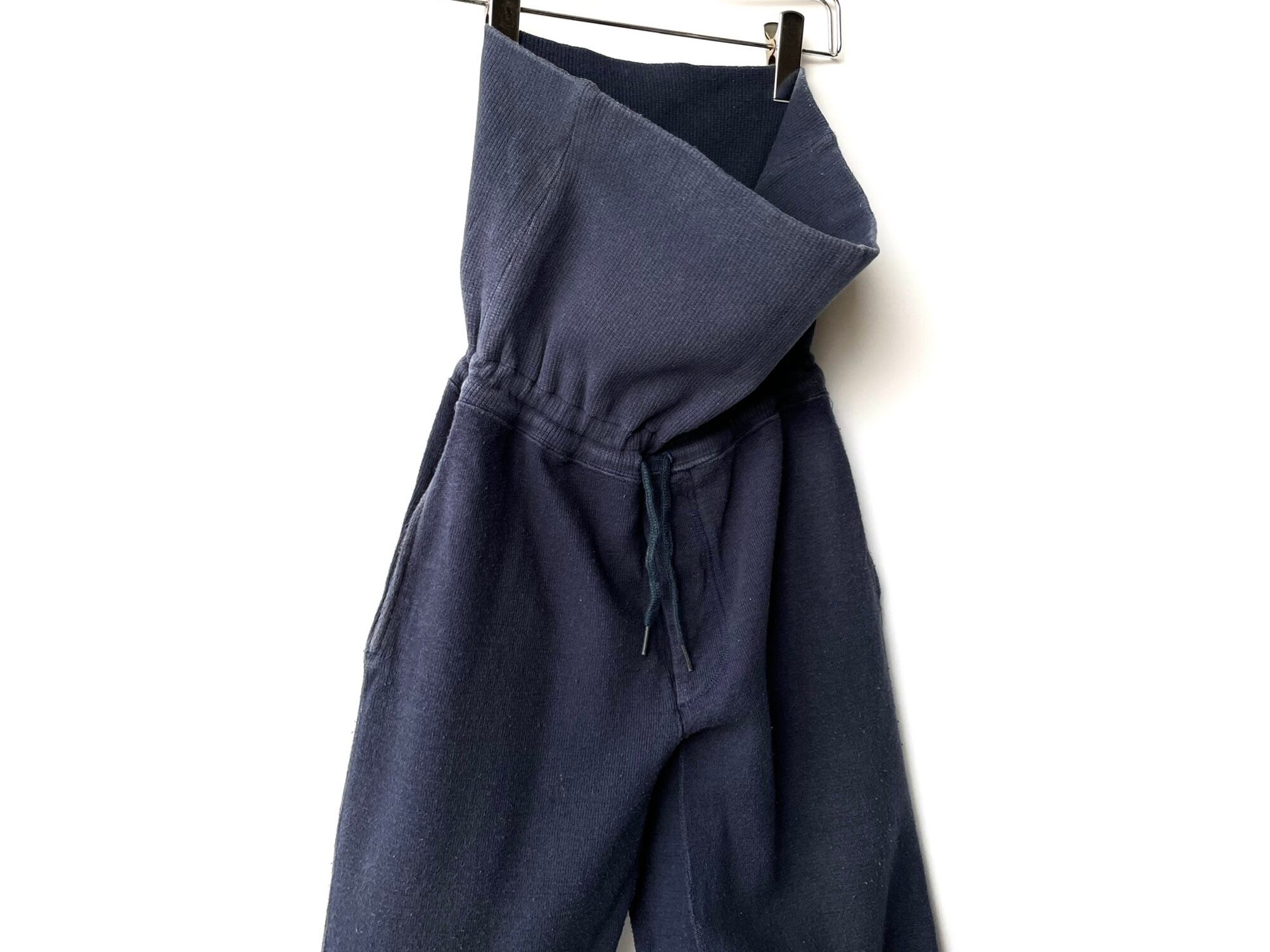 広い渡りから裾リブに向けて強いテーパードがかかる、特徴的なリラックスシルエット。