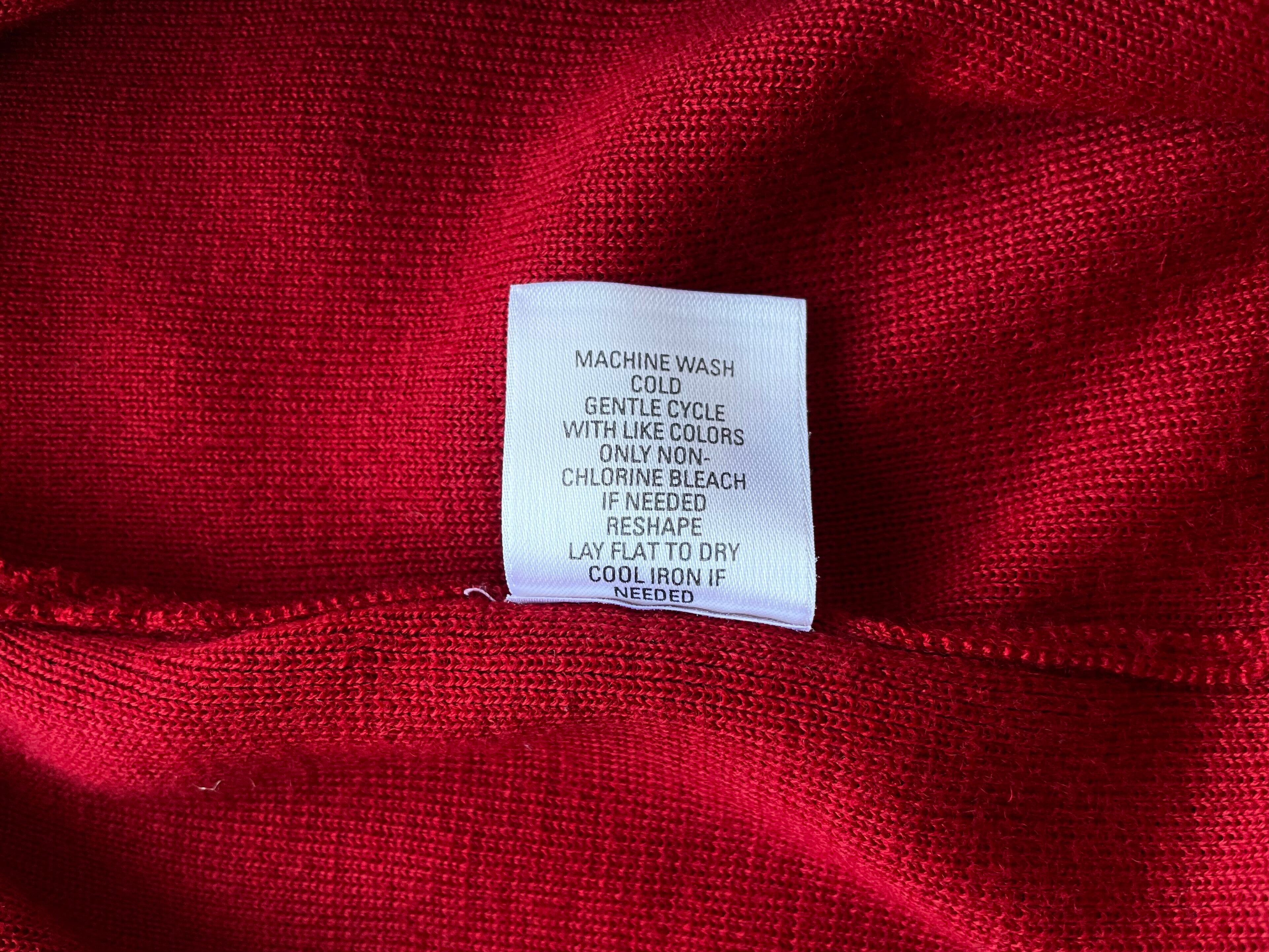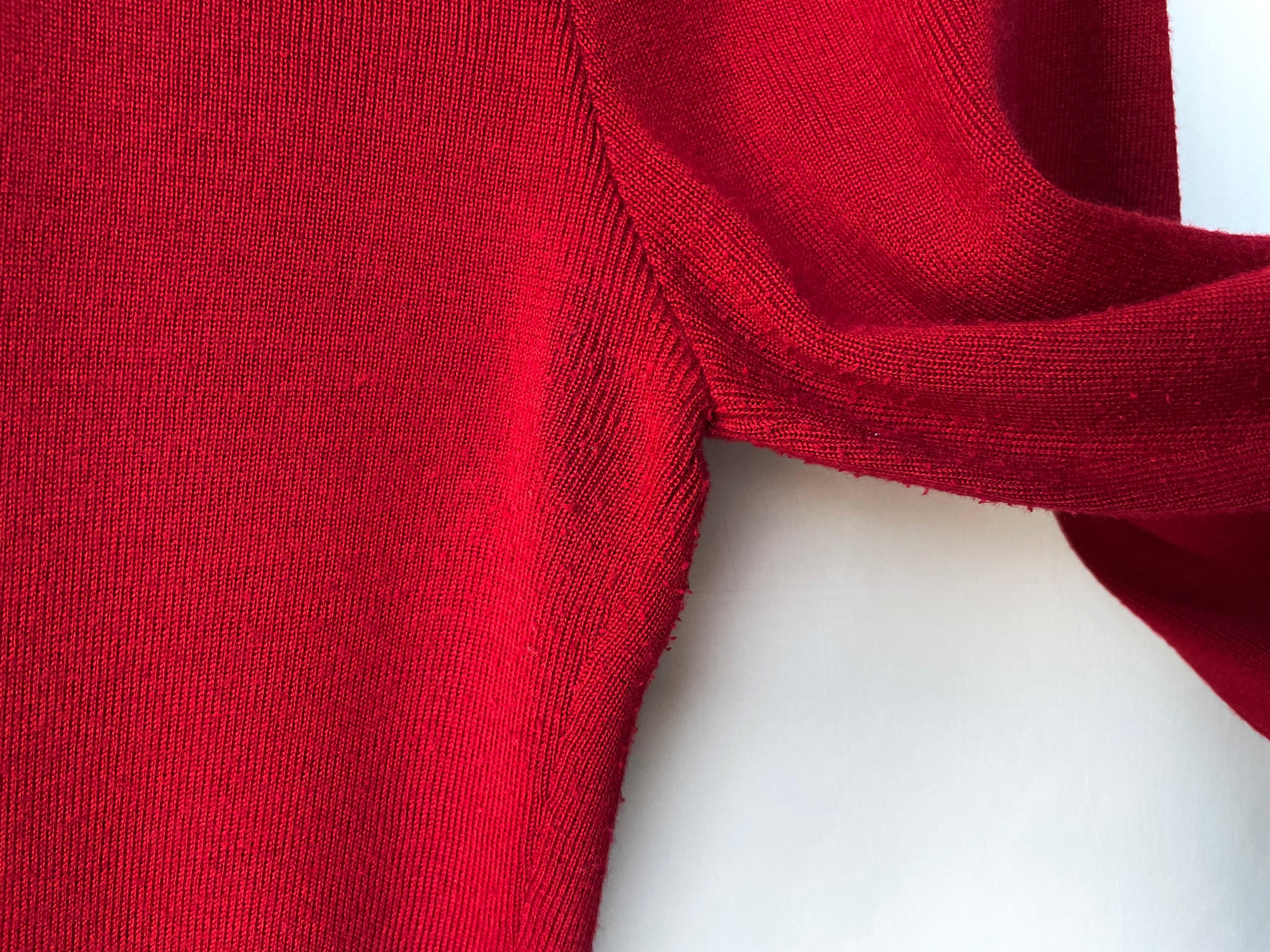 鮮やかな赤のたっぷり肉厚なアクリル/ウールニットボディ。