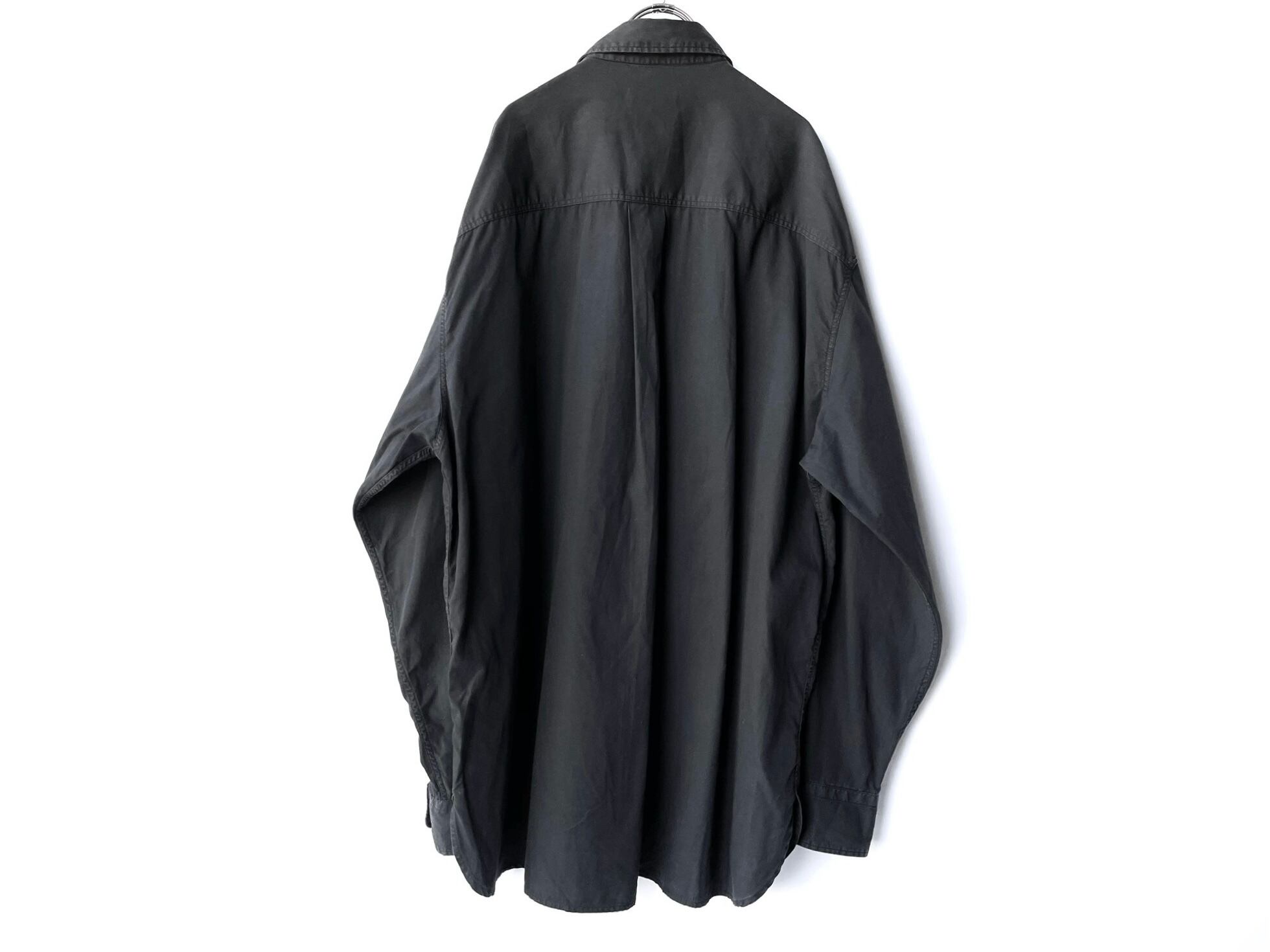 小ぶりな襟のワイドシルエットで、前後差のある深いラウンドカット。