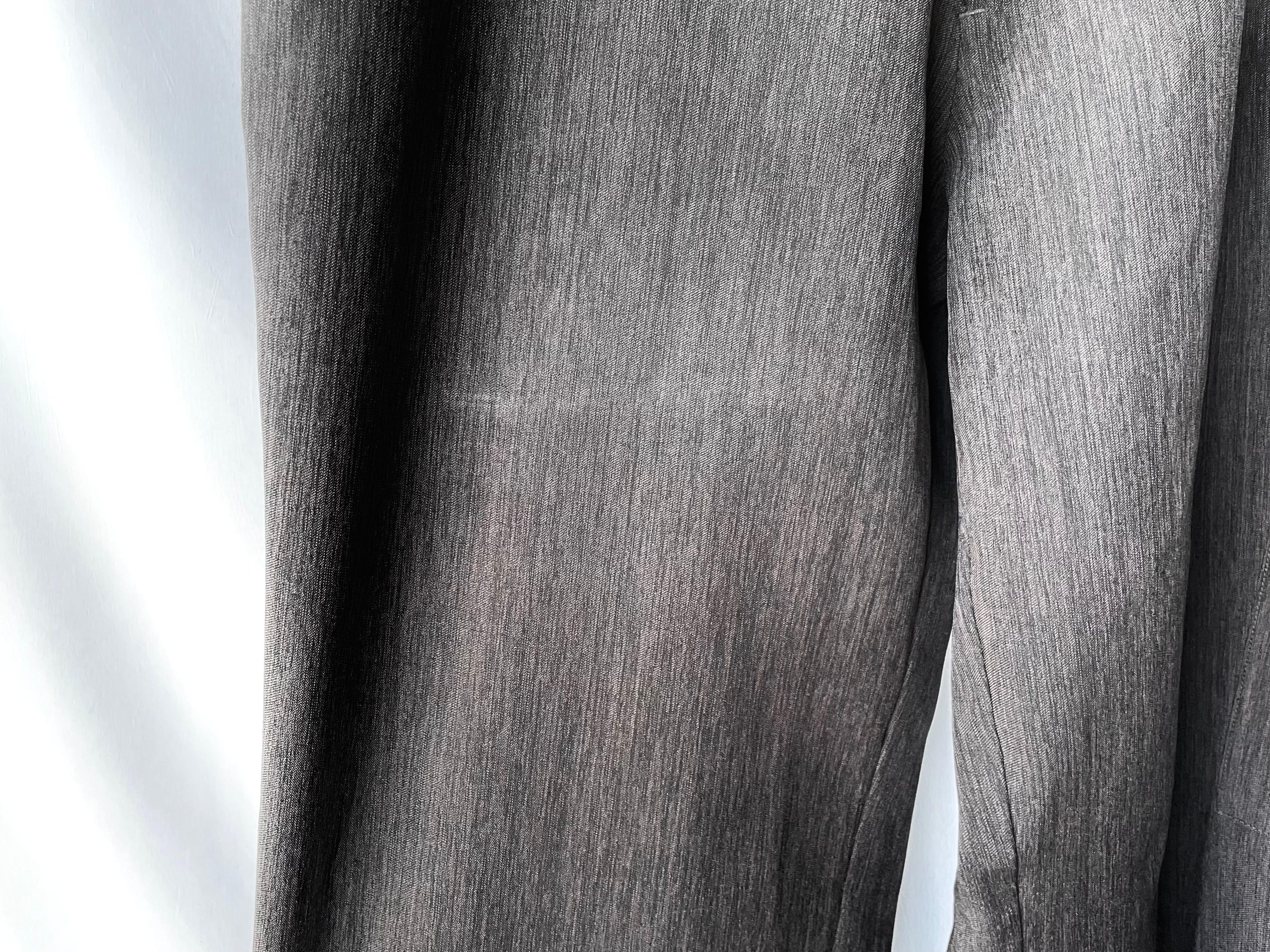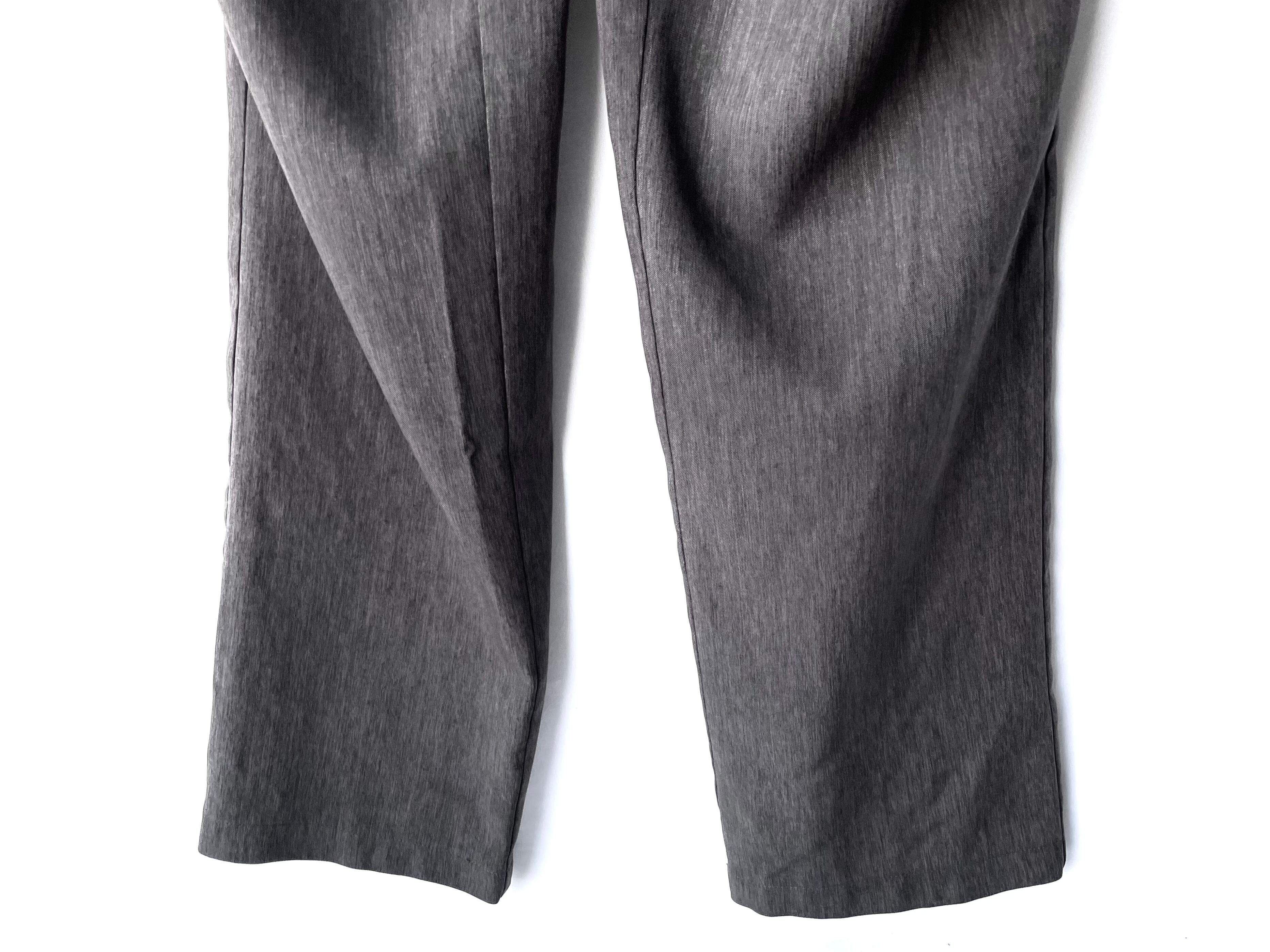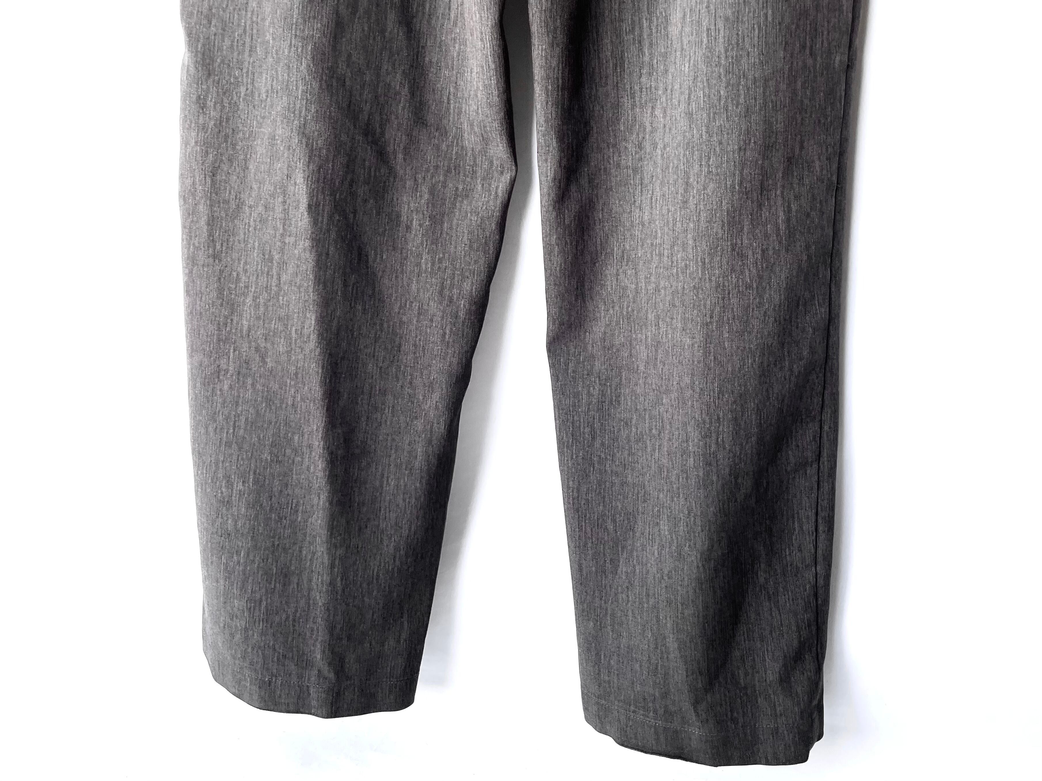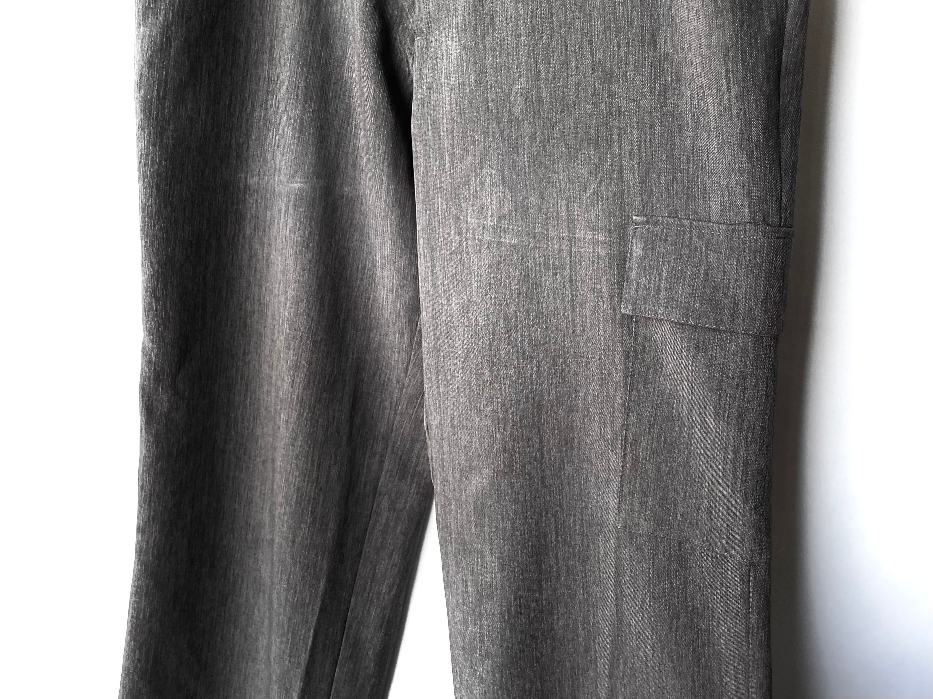 癖のないノータックフロントの形の良いスラックスパンツに、左膝のみにカーゴポケットを配置した様な都会的なシルエットバランス。