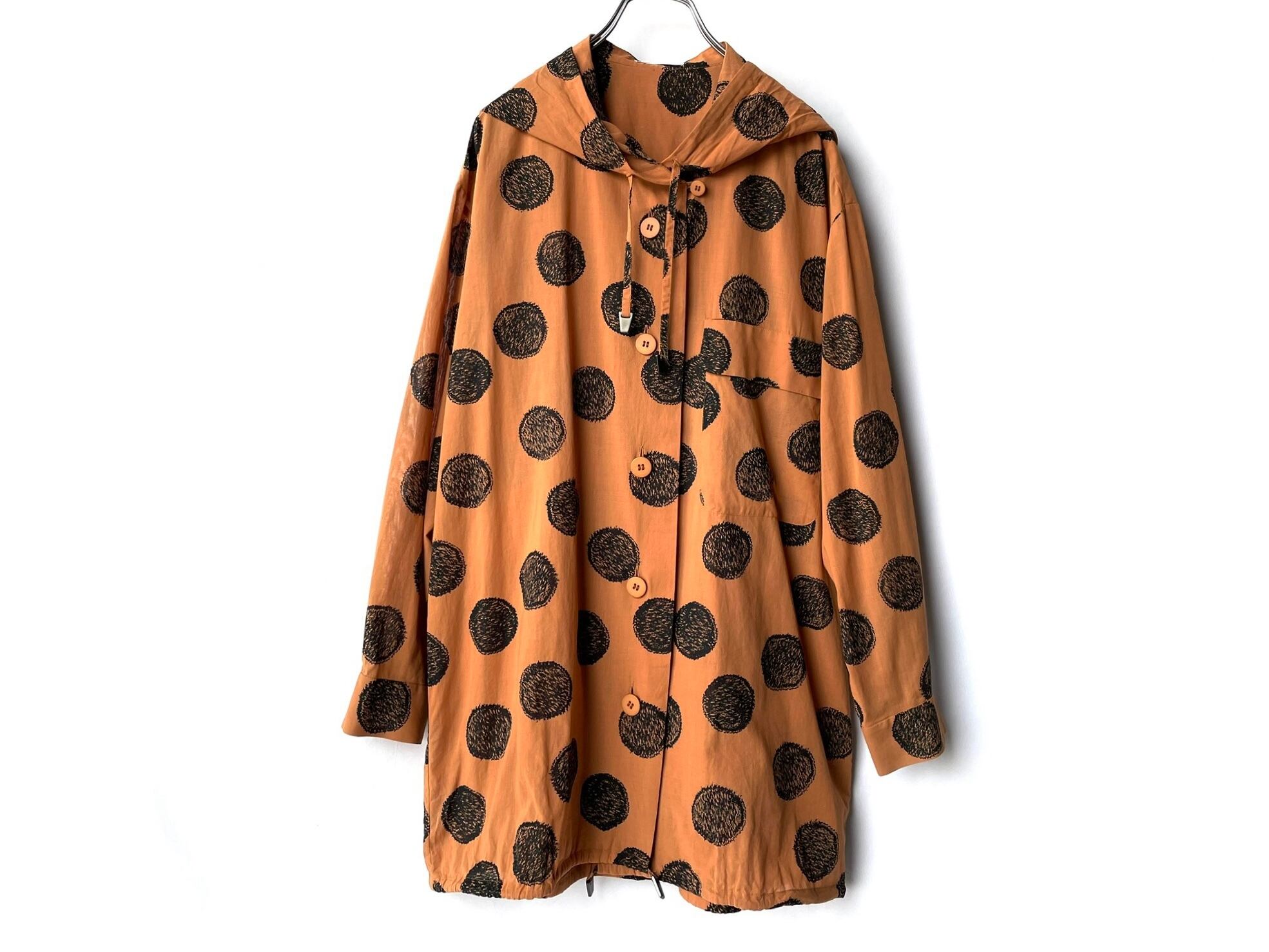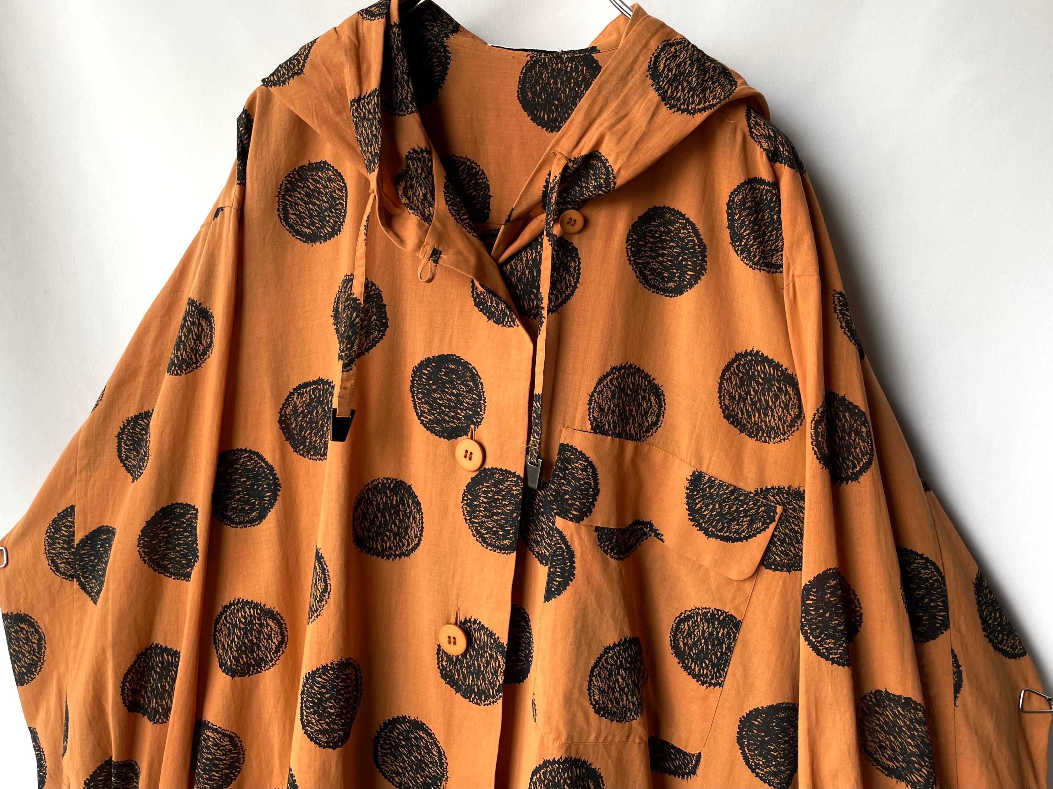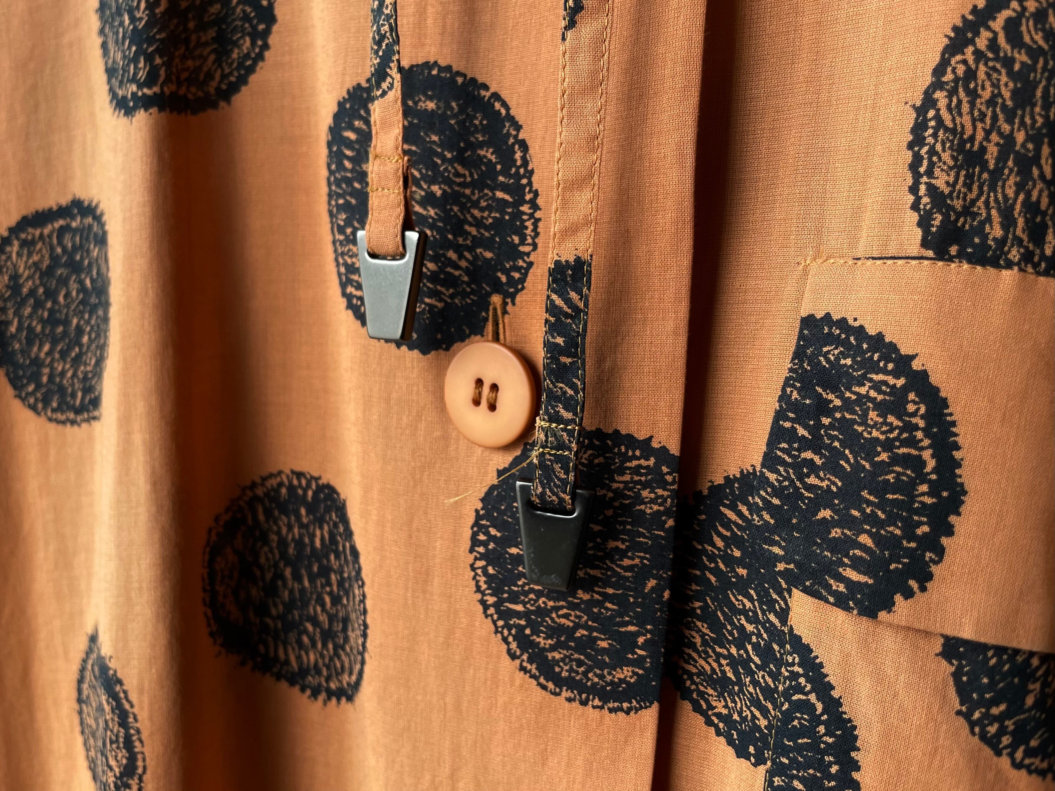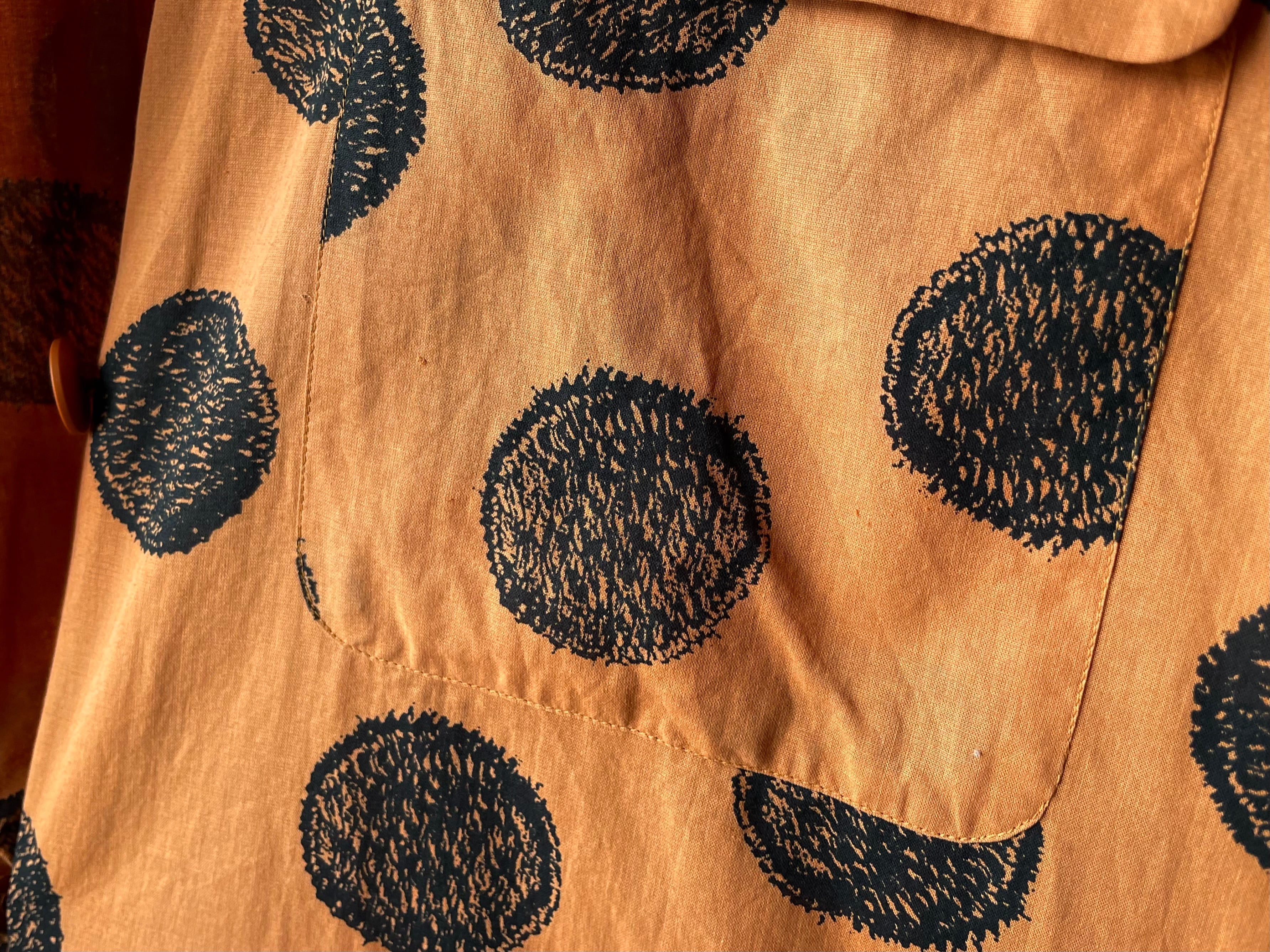 ブラック×オレンジブラウンのハンドタッチな大判ドット。