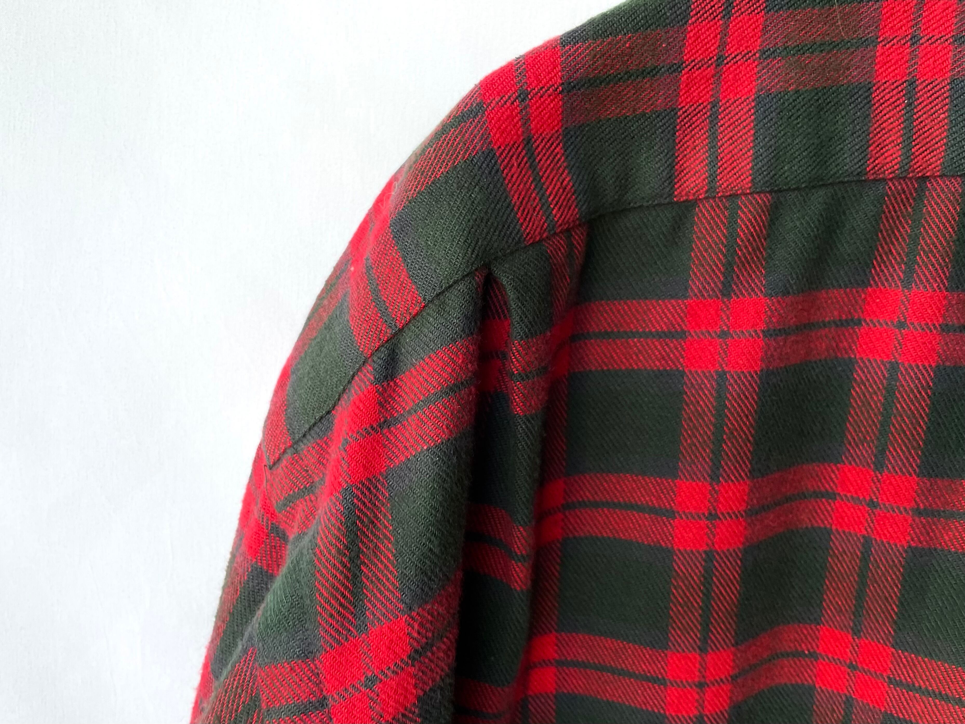 個人的にも大好きなこのラベルとほぼ同じ色調を選んだ、少し暗めの緑/赤のチェックパターン。