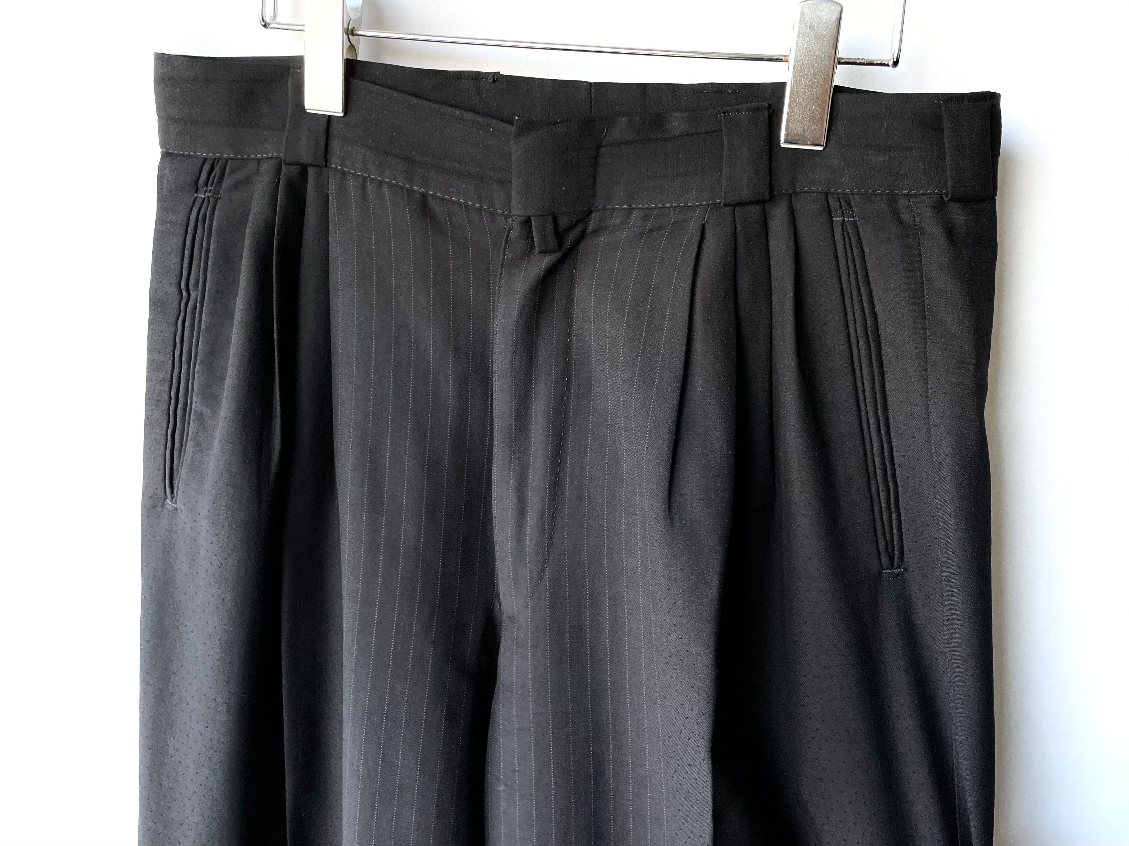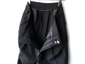 ボトムスは生地分量の多い深い4タックフロント。
