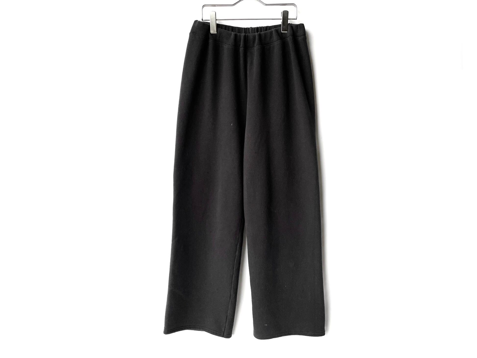 裾リブの付かない、ストンと落ちるワイドストレートのスウェットパンツ。