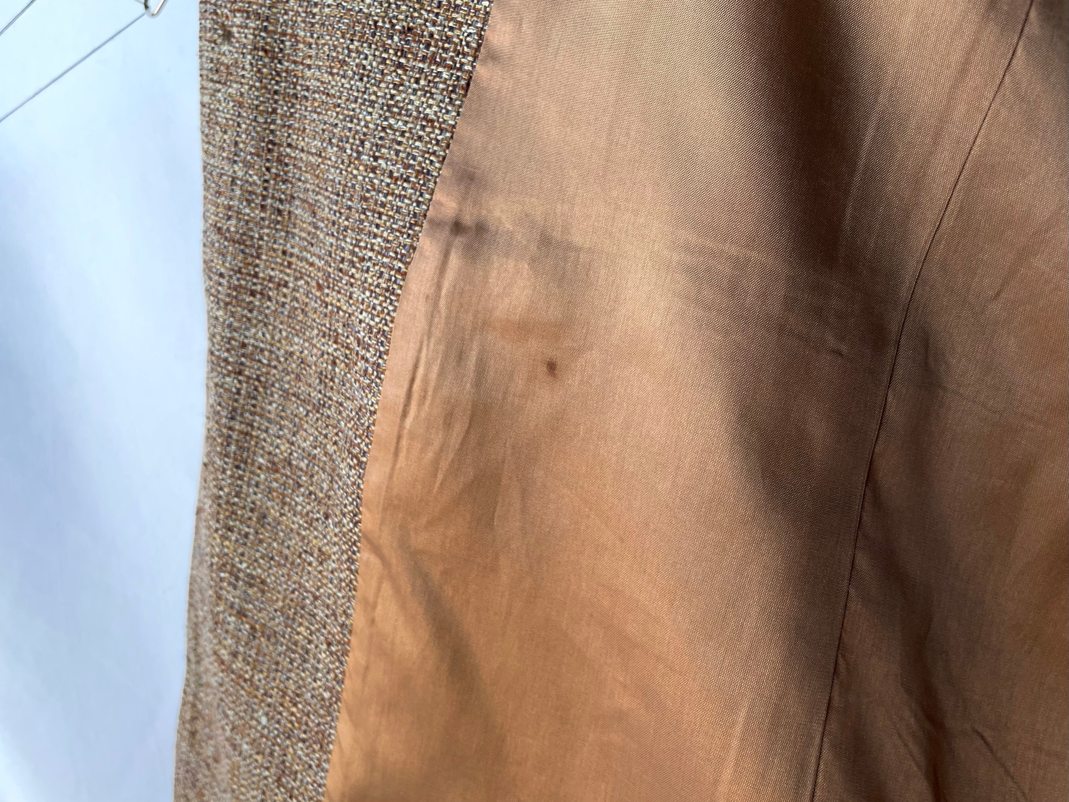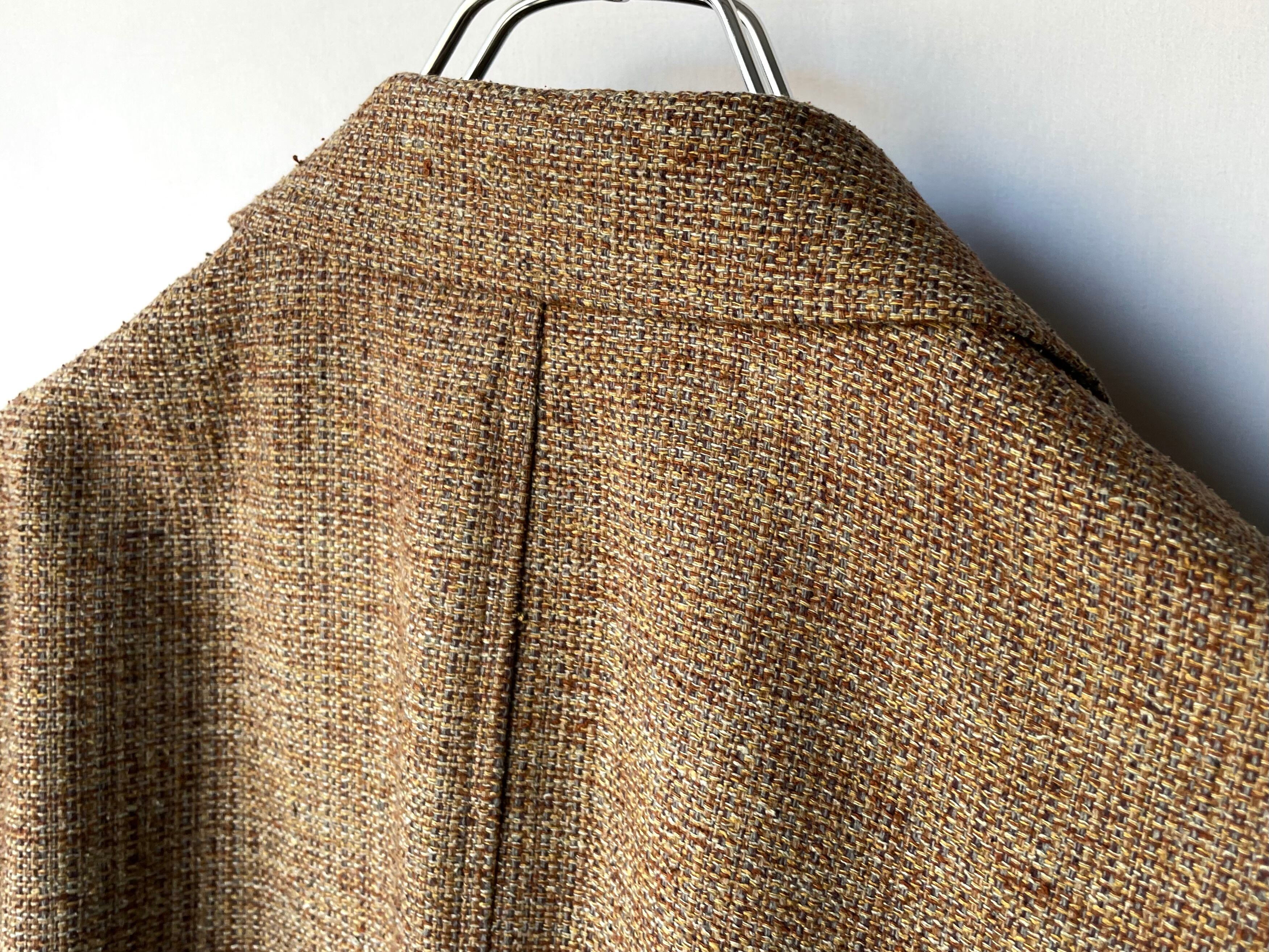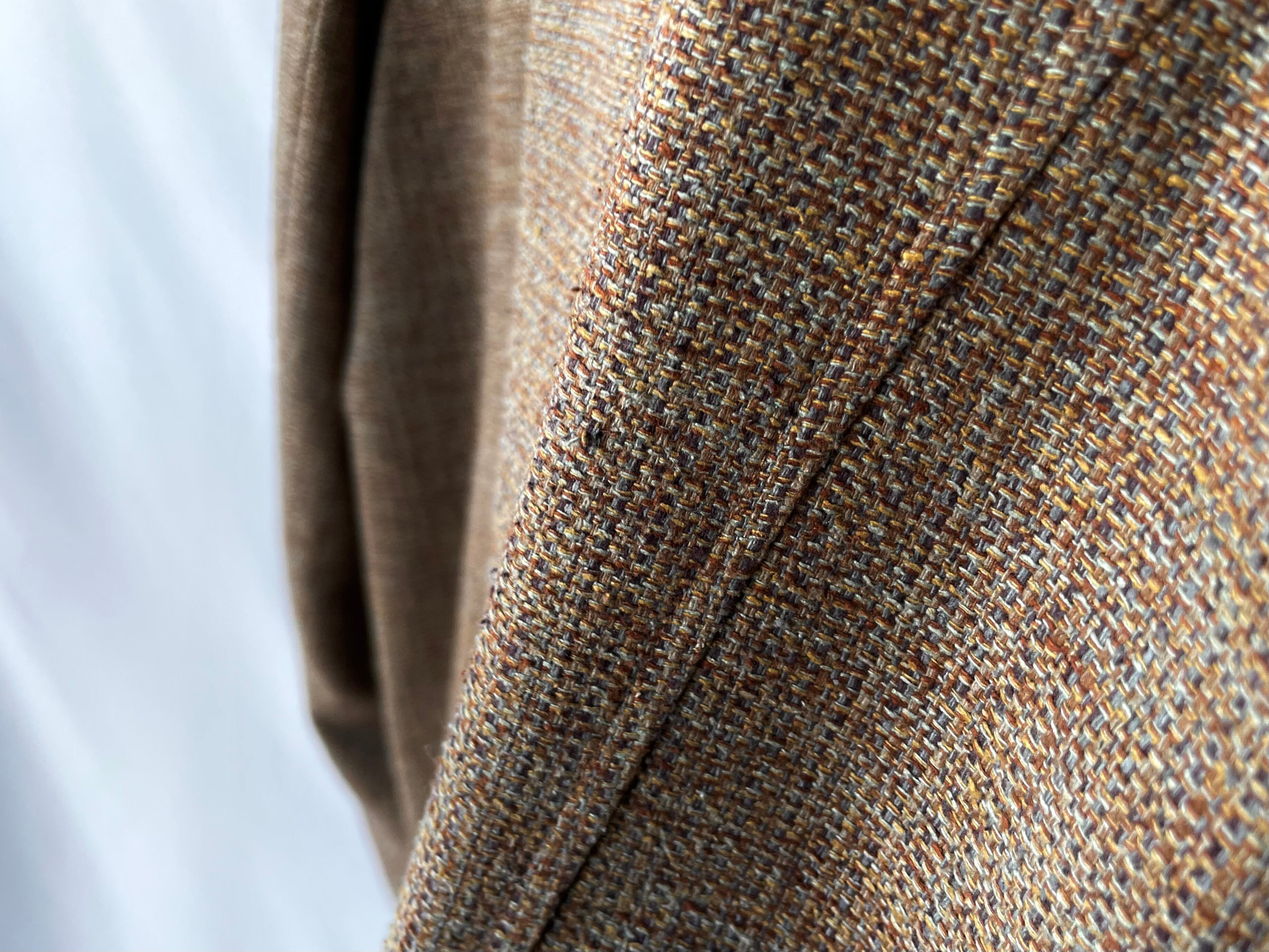 イエロー/オレンジブラウン/ブルーグレー等の多色の糸が混じり合う美しい織柄生地。