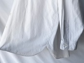 やや高さのある台襟からたっぷり大判な生地が寝かせられた、この一着独自の襟型。
