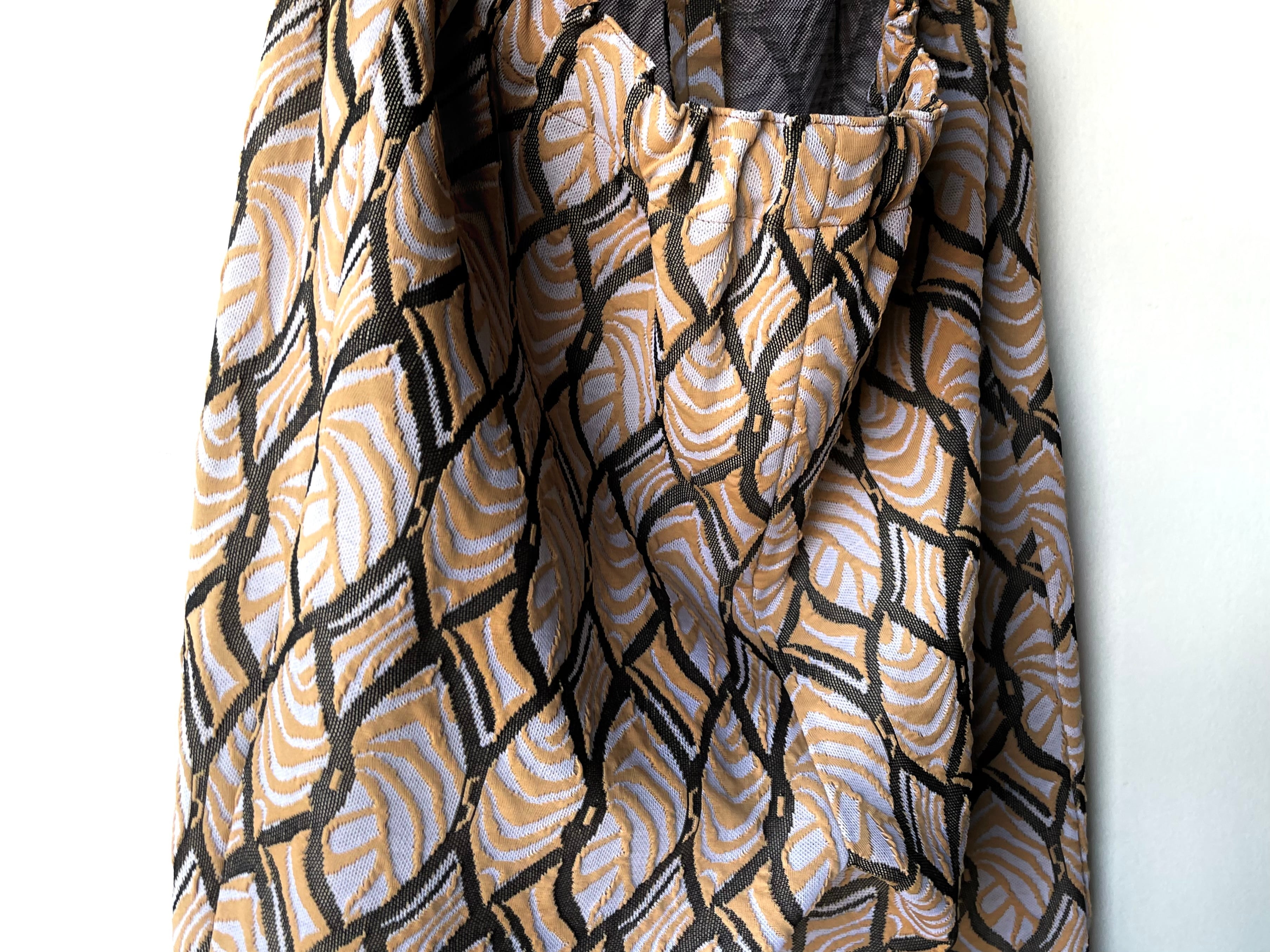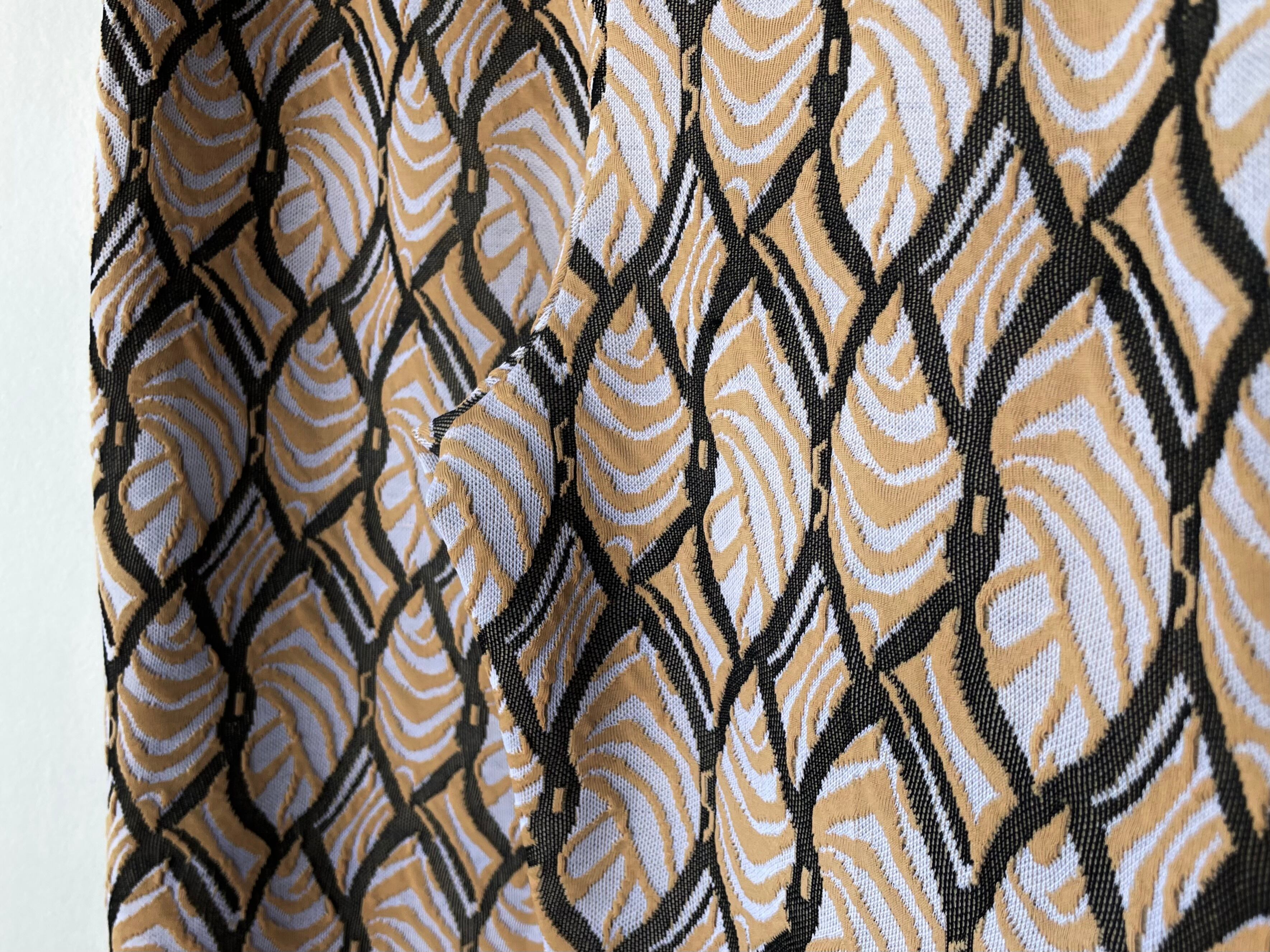 どこかトライバルの匂いもする細かな織模様が乗った、柔らかなポリジャガード。
