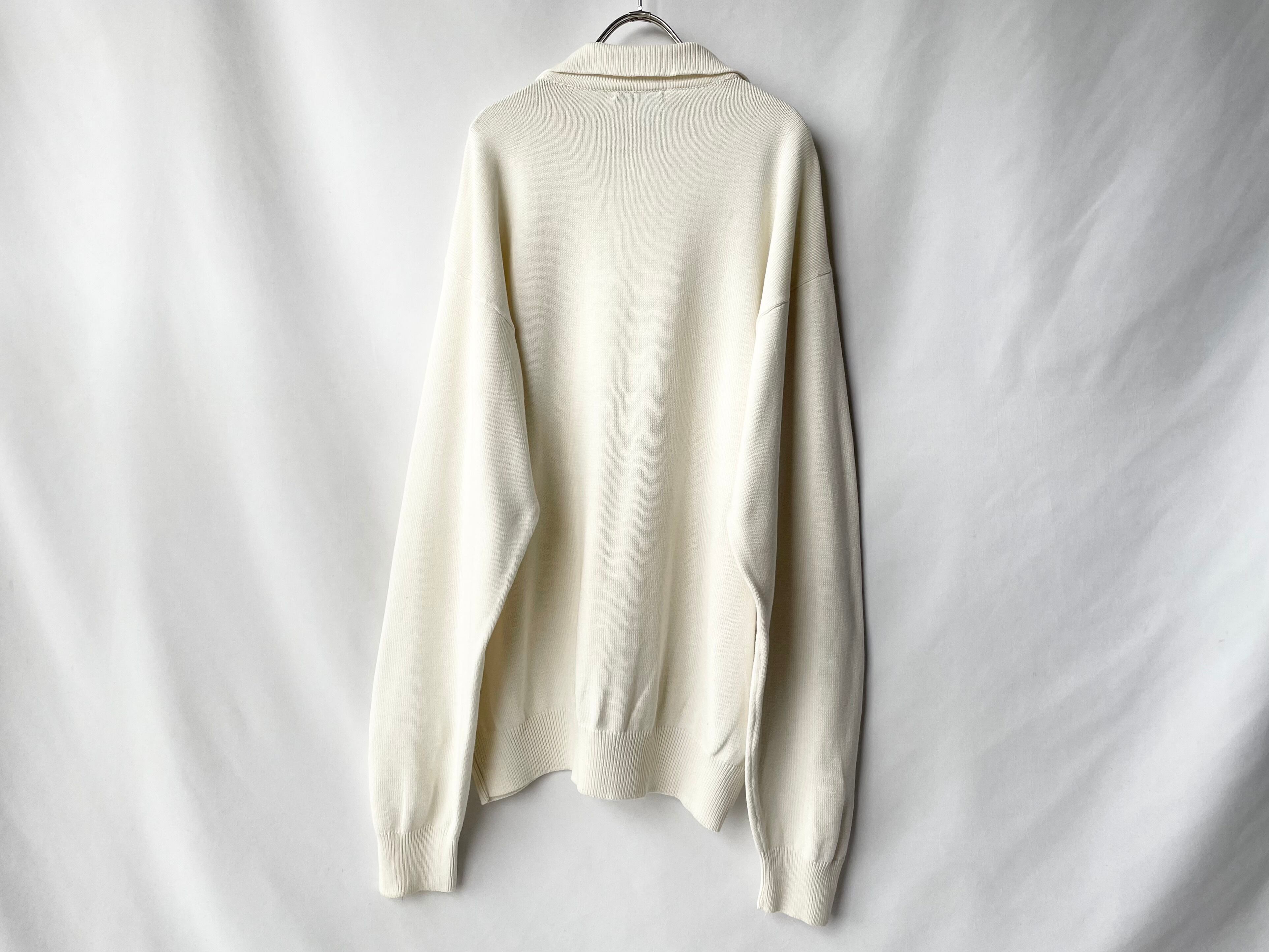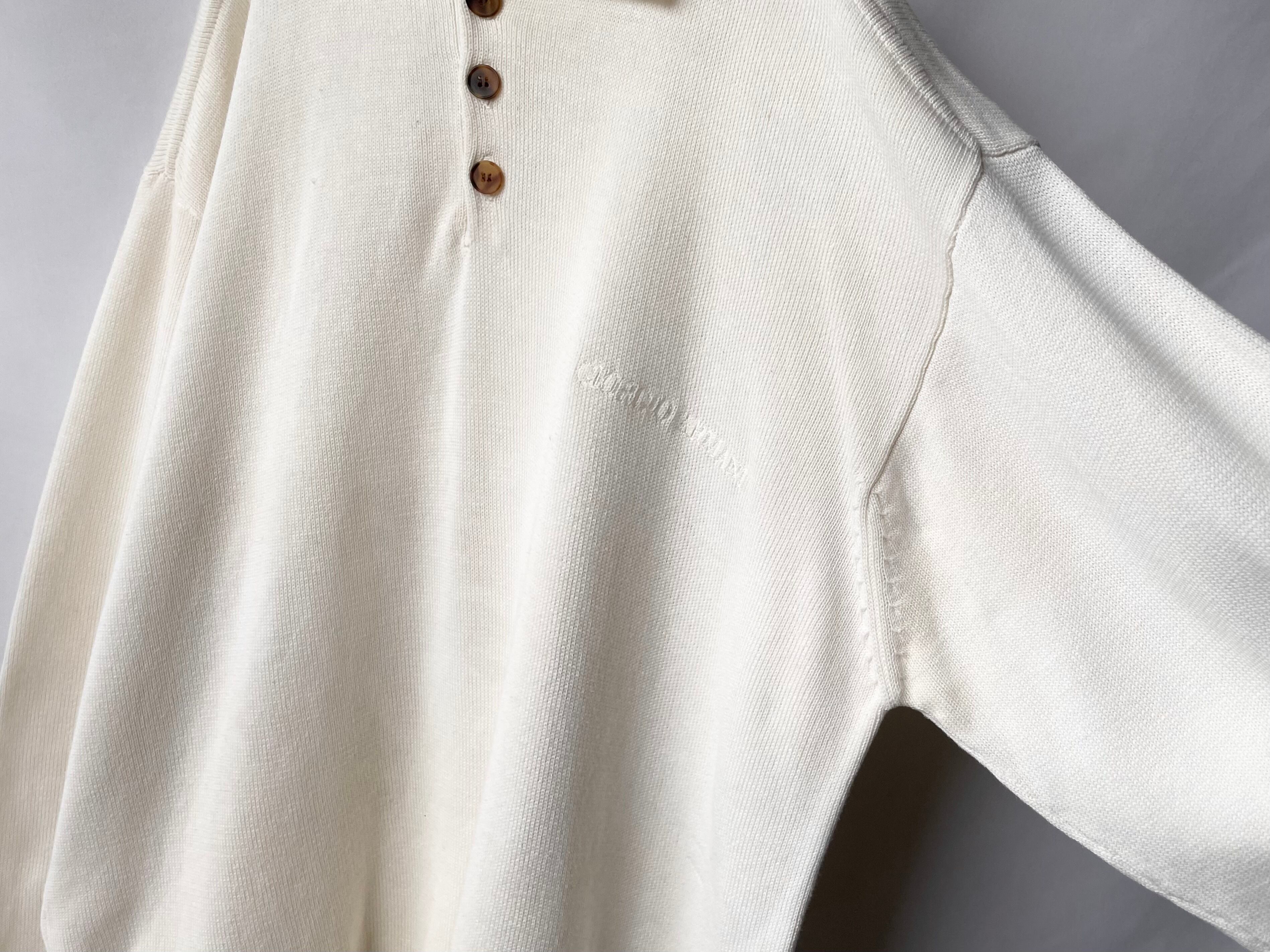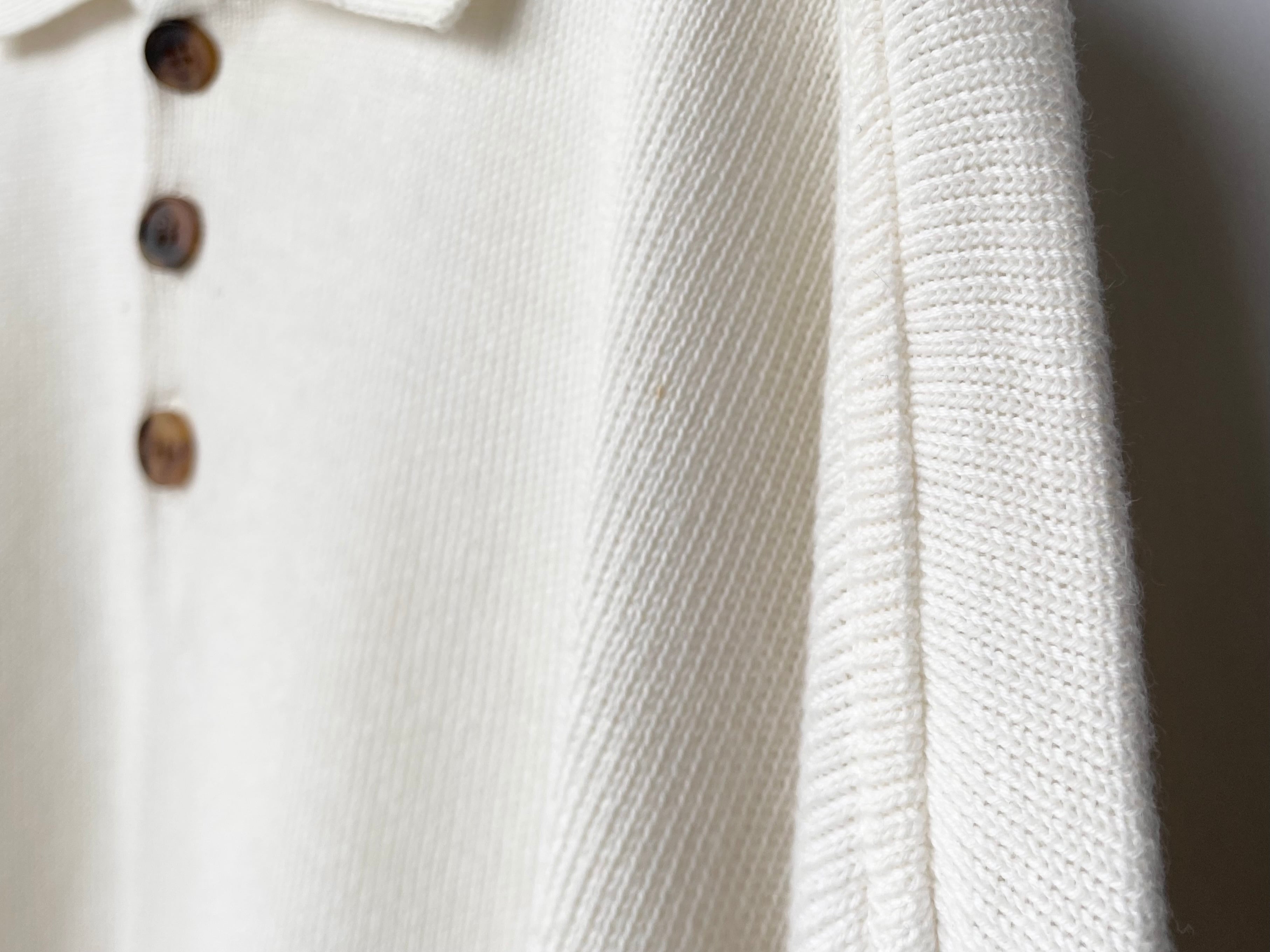 淡いオフホワイトカラーのコットンニットポロ。