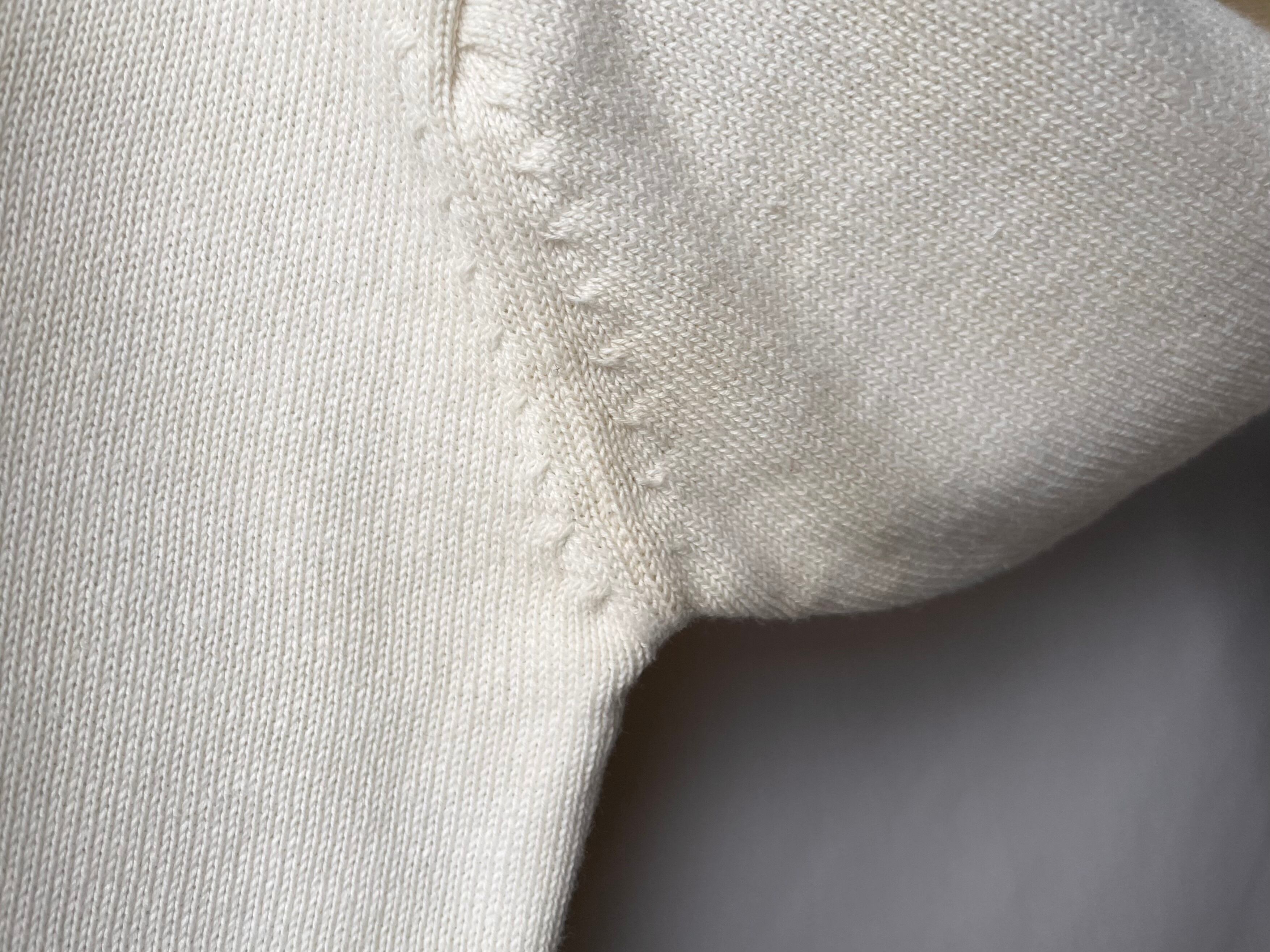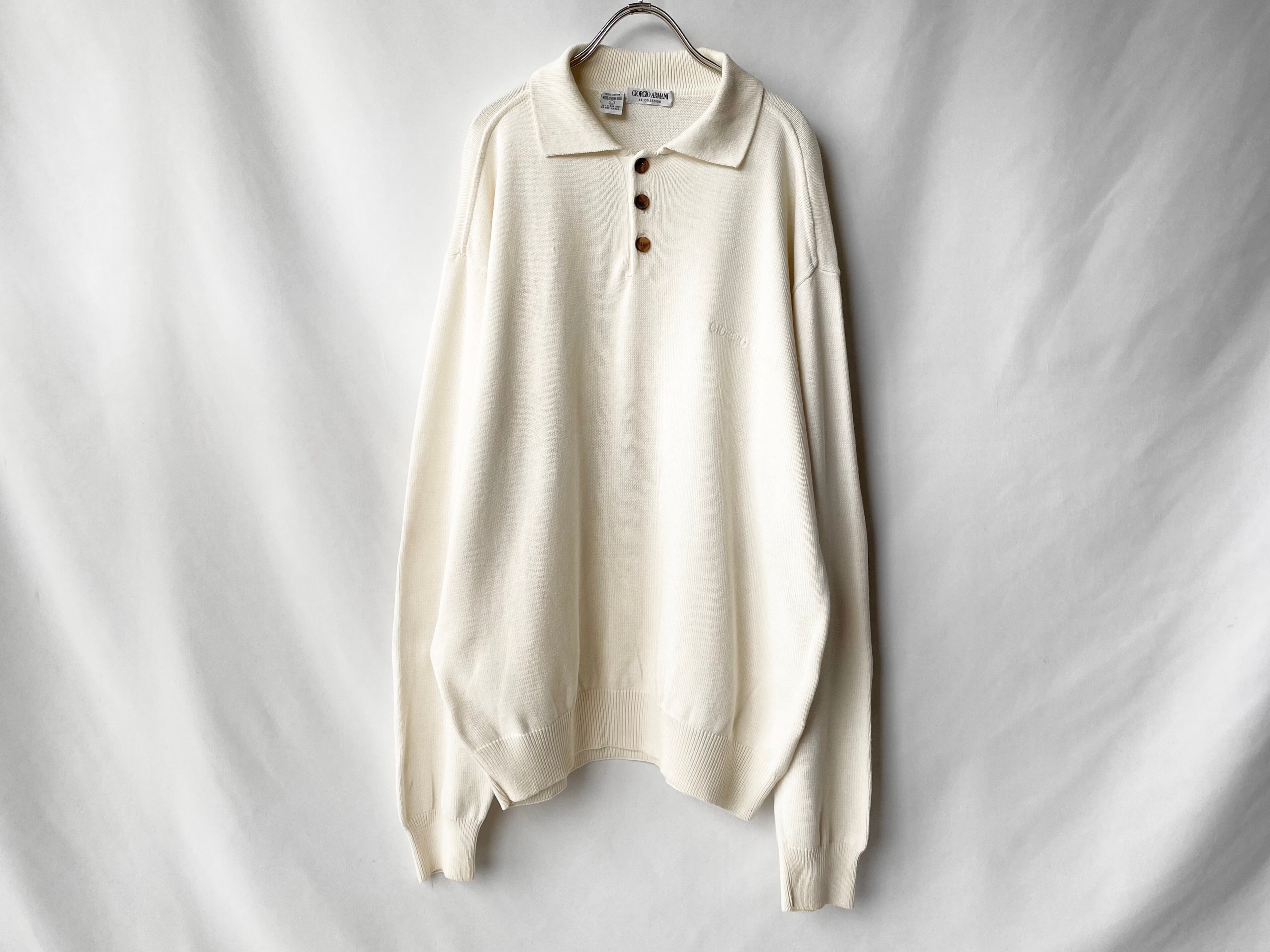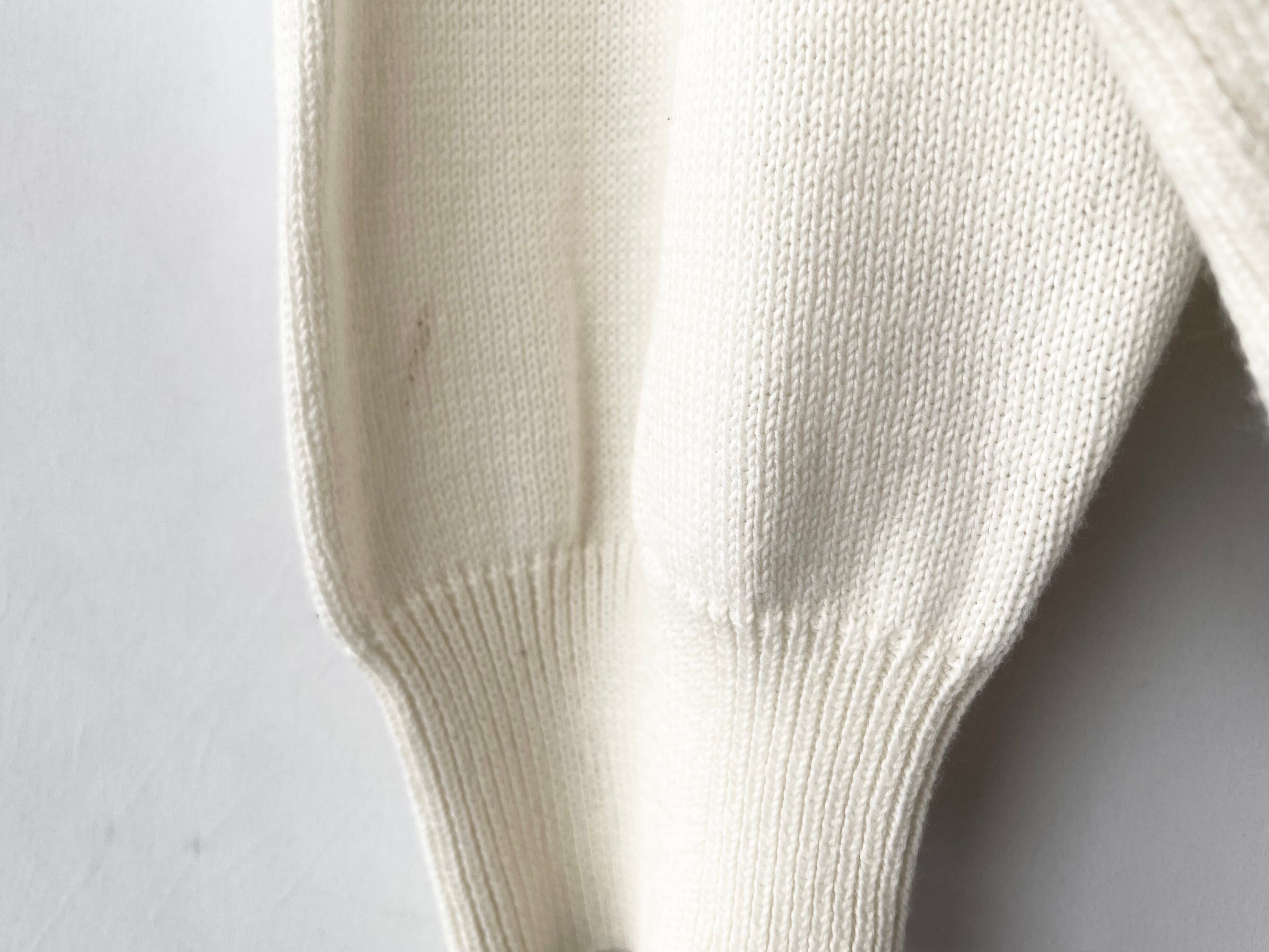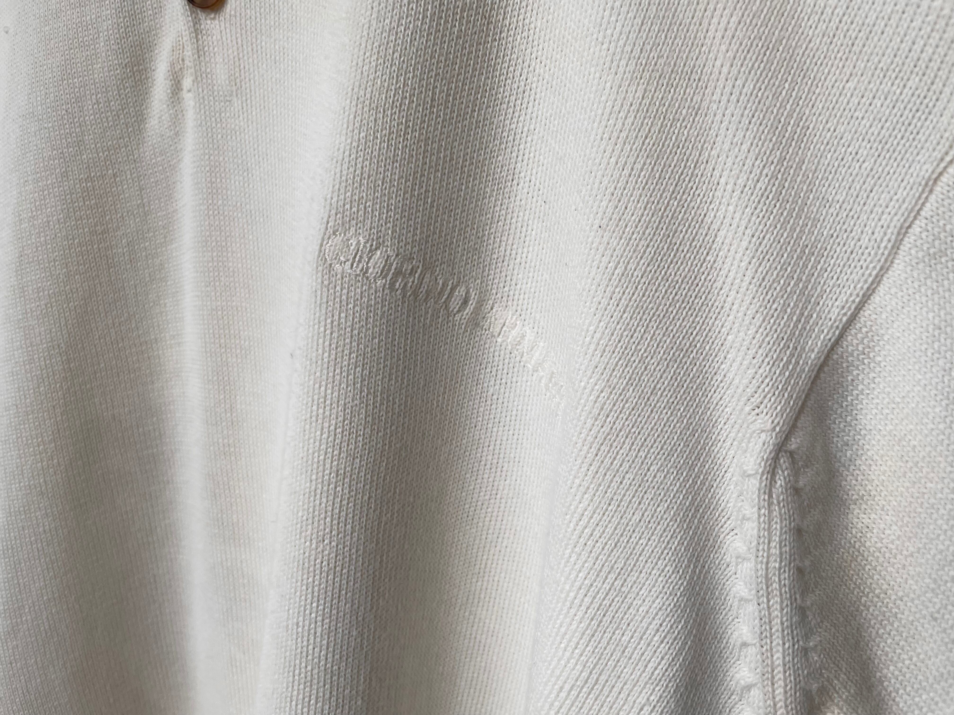 淡いオフホワイトカラーのコットンニットポロ。